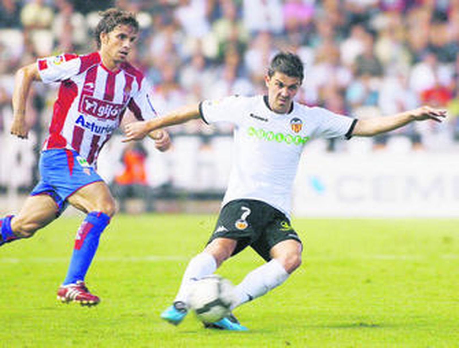 A partir de ese momento, el Sporting se mostró como un equipo con ideas claras ante un Valencia no se vio afectado por el tanto recibido. Tenía el balón y jugaba un buen fútbol. Así llegó la igualada de Villa (24') y la inmediata expulsión del visitante Míchel.