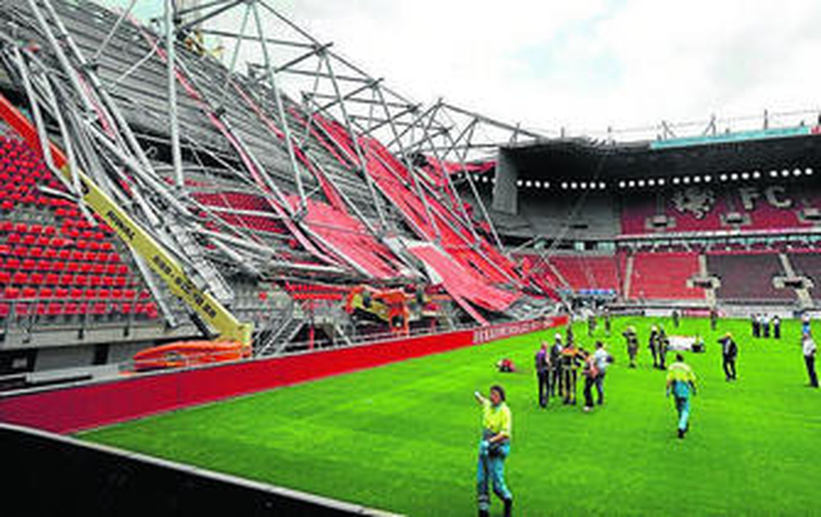 Una persona murió y catorce resultaron heridas de diversas consideración al desplomarse una parte del techo del estadio Grolsch Veste, sede del FC Twente de la localidad de Enschede, en el este de Holanda. En el lugar había varias personas, trabajadores de la construcción, algunos de los cuales quedaron atrapados bajo los escombros. La víctima mortal es uno de los obreros. El incidente se produjo a mediodía, y hasta el estadio se desplazaron unas 30 ambulancias y un helicóptero de urgencias. "Hay varias personas sepultadas bajo los escombros, pero no sabemos cuántas", comentó un portavoz de la Policía.