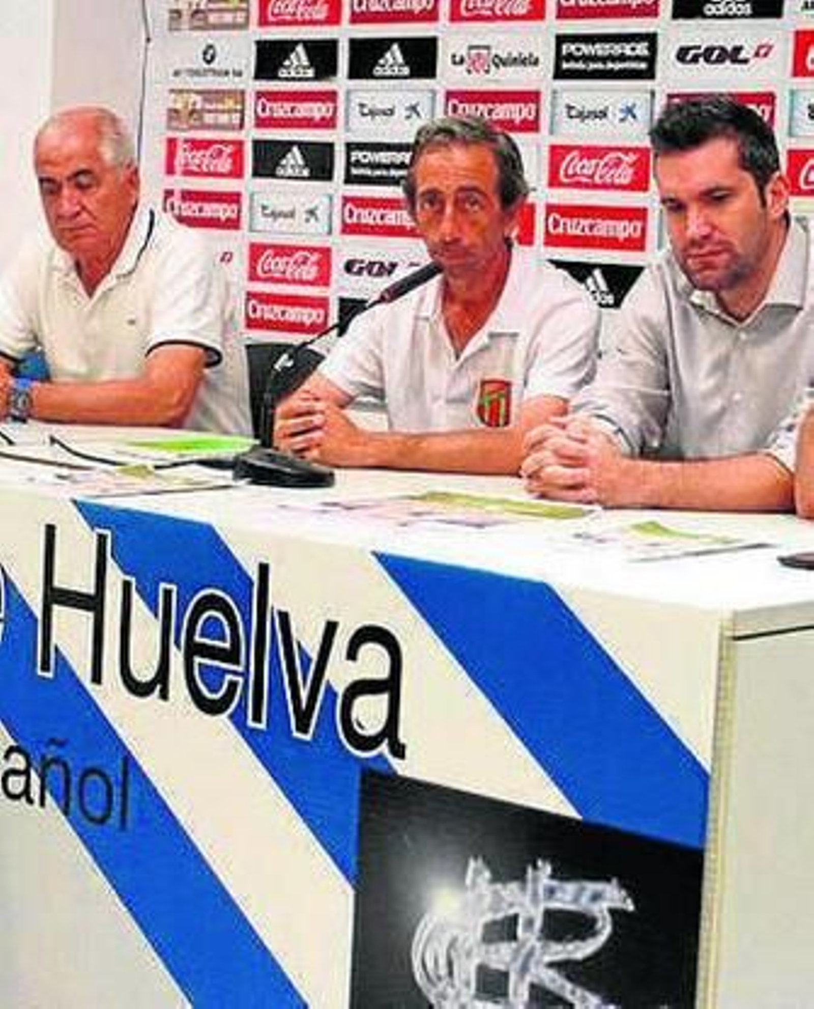 La presentación del choque benéfico contó con la presencia del técnico Juan Carlos Camacho, Manolo Mendoza, que dirigirá a los recreativistas, y Javi Pancho, que será el técnico de la selección de veteranos. Junto a ellos, el jefe de prensa del Recre, Nardy Lafuente, uno de los promotores del acto.