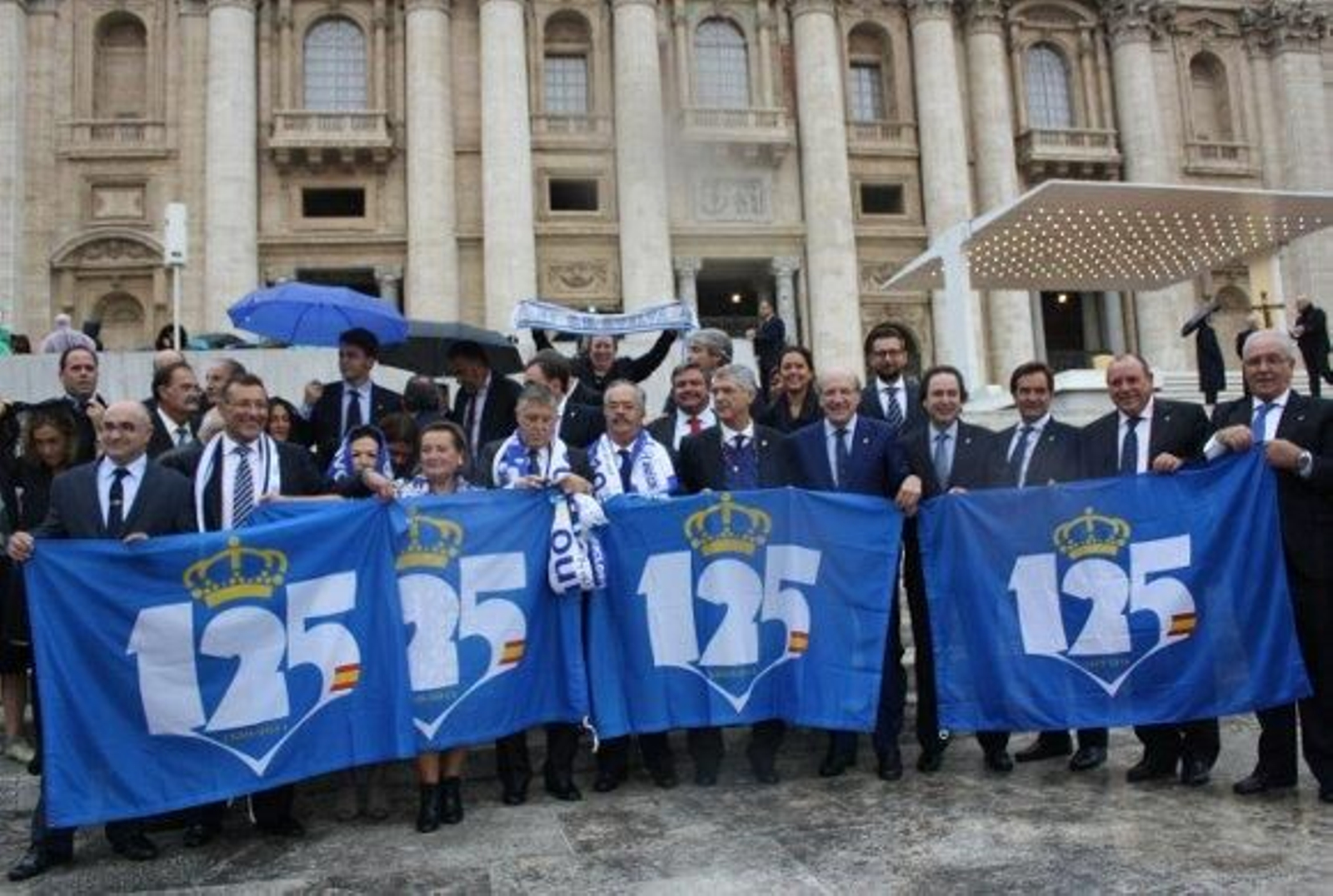 Medio centenar de recreativistas han tenido la oportunidad de vivir un momento histórico para el club albiazul, al estar presentes en la audiencia general que el Papa Francisco ha ofrecido este miércoles en El Vaticano. Miembros del consejo de administración, con su presidente Pablo Comas a la cabeza; el Alcalde Pedro Rodríguez, el concejal Manuel Remesal y otras personalidades y seguidores de a pie del Decano han podido saludar al Papa Francisco en la Plaza del Vaticano.