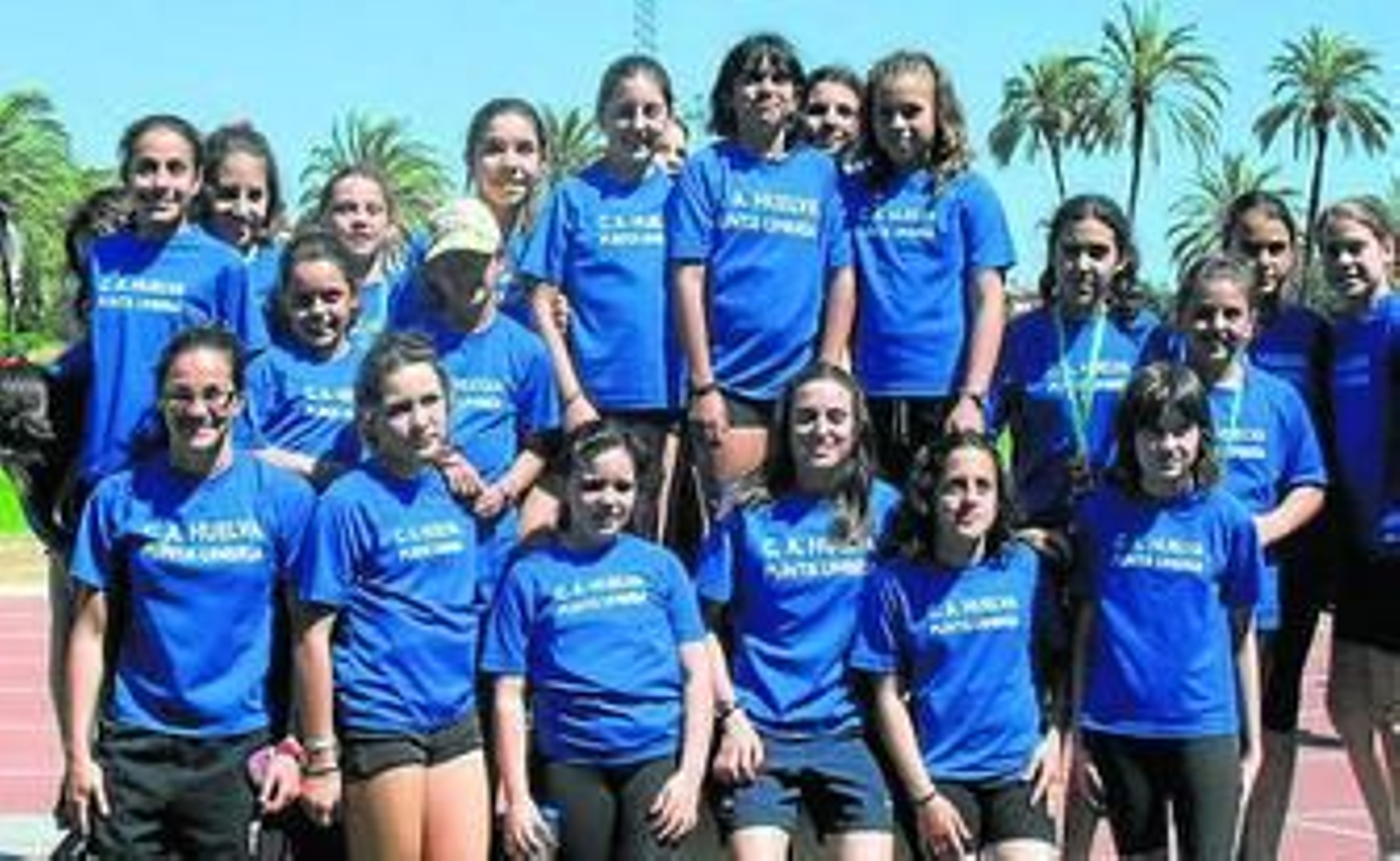 La escuadra onubense presentó un equipo compuesto por 19 atletas, once en categoría infantil y ocho en alevines, la mayoría de ellas procedentes del Centro Diocesano Sagrado Corazón de Jesús. Muchas de ellas iniciaron sus entrenamientos hace menos de dos meses y aunque se están iniciando en el atletismo, el club cosechó cuatro medallas pese a que ninguna de las atletas compitió con zapatillas de clavos en las pruebas de saltos y carreras.