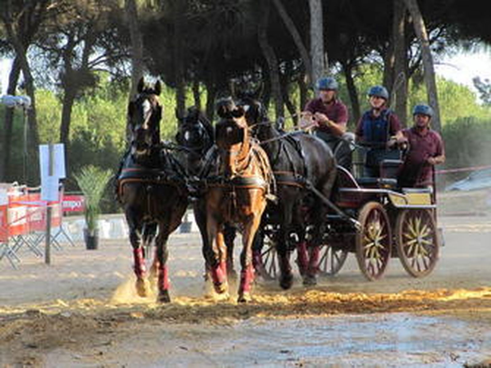 Día soleado, aunque con algo de viento desagradable en la jornada de ayer, en una de las más pruebas más atractivas del Campeonato. Aficionados de distintos puntos de España presenciaron el día de obstáculos en la prueba de maratón, que como no podía ser menos, ganó en espectacularidad con todos los coches pasando a gran velocidad por los ocho obstáculos de los que constaba el circuito. La más interesante fue la ría, donde se concentró cientos de personas para ver in situ, y con la dificultad del agua, el trabajo de los caballos y cocheros sorteando los eucaliptales.