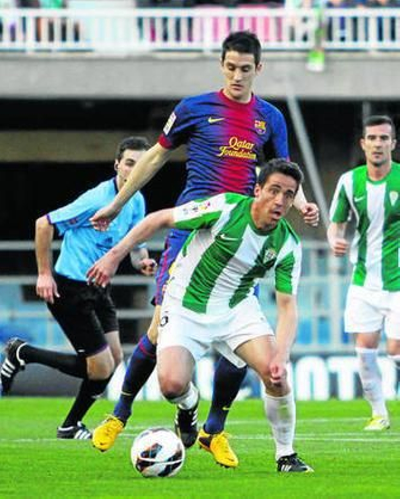 El espectáculo lo abrió Luis Alberto, tras un gol anulado al Córdoba por un absurdo fuera de juego. El futbolista cedido por el Sevilla se erigió de nuevo en el auténtico comandante del filial y lanzó un pase preciso entre mil piernas a Deulofeu, que marcó con un sutil toque. Poco después, Luis Alberto amplió el marcador con un disparo cruzado y seco. Recortó López Garay tras un córner, pero Dongou, tres minutos después, marcó el tercero y Araujo hizo el cuarto tras otro magnífico pase de Luis Alberto.