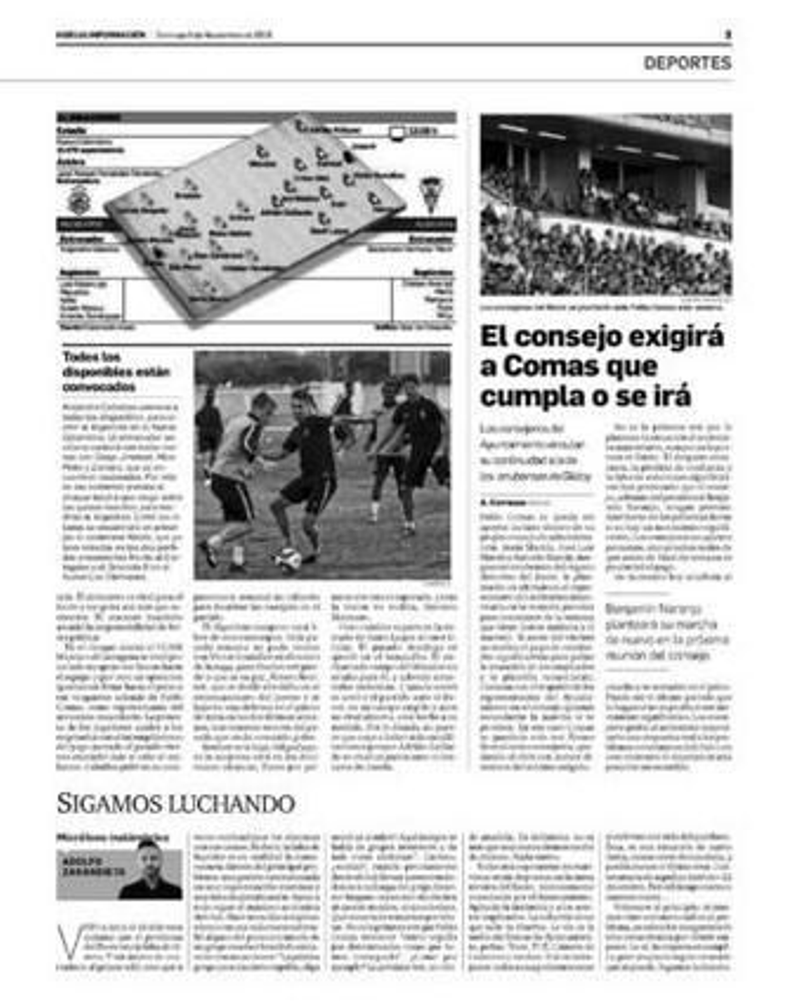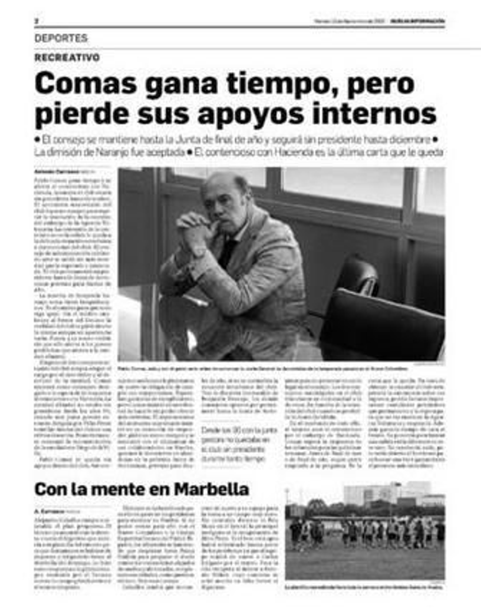 El Recreativo emitió una nota el pasado mes de noviembre en la que negaba una noticia publicada por Huelva Información el día 13 de ese mes en la que se decía que los consejeros onubenses habían dado un ultimátum a Pablo Comas, el accionista mayoritario del club, para que cumpliera con sus compromisos o dimitirían.