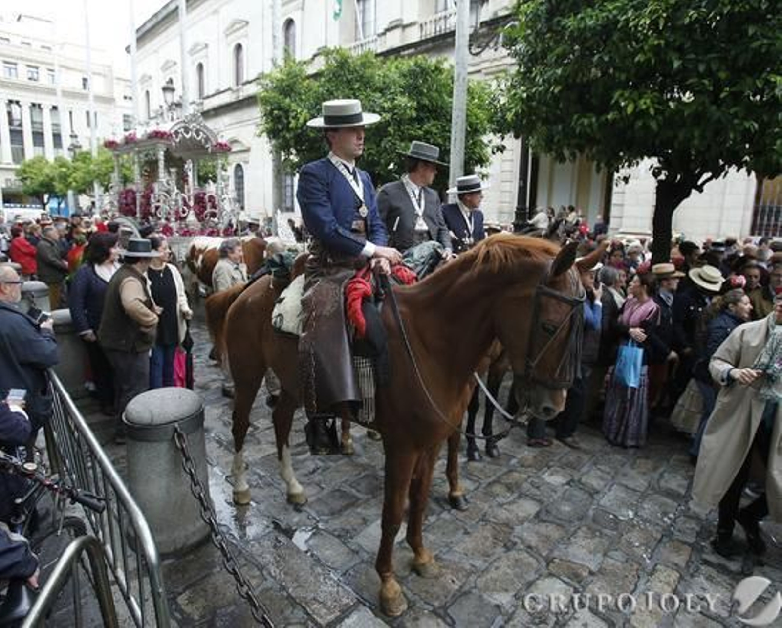 La ciudad recupera la cara de jueves, Rubicón de la semana. Los comercios empiezan a abrir en Cuna y en Orfila. Manuel Melado se inspecciona la barba en un espejo de su barbería; Padilla camina por Trajano para abrir su librería de Trajano. El Jueves, como los romeros, aprovecha la tregua de sol mañanero, puro espejismo de lo que caería después del mediodía. Se ve menos gente que de costumbre en el mercadillo. Sevilla y Sevilla Sur tienen mucho tirón de hermanos, peregrinos y acompañantes.