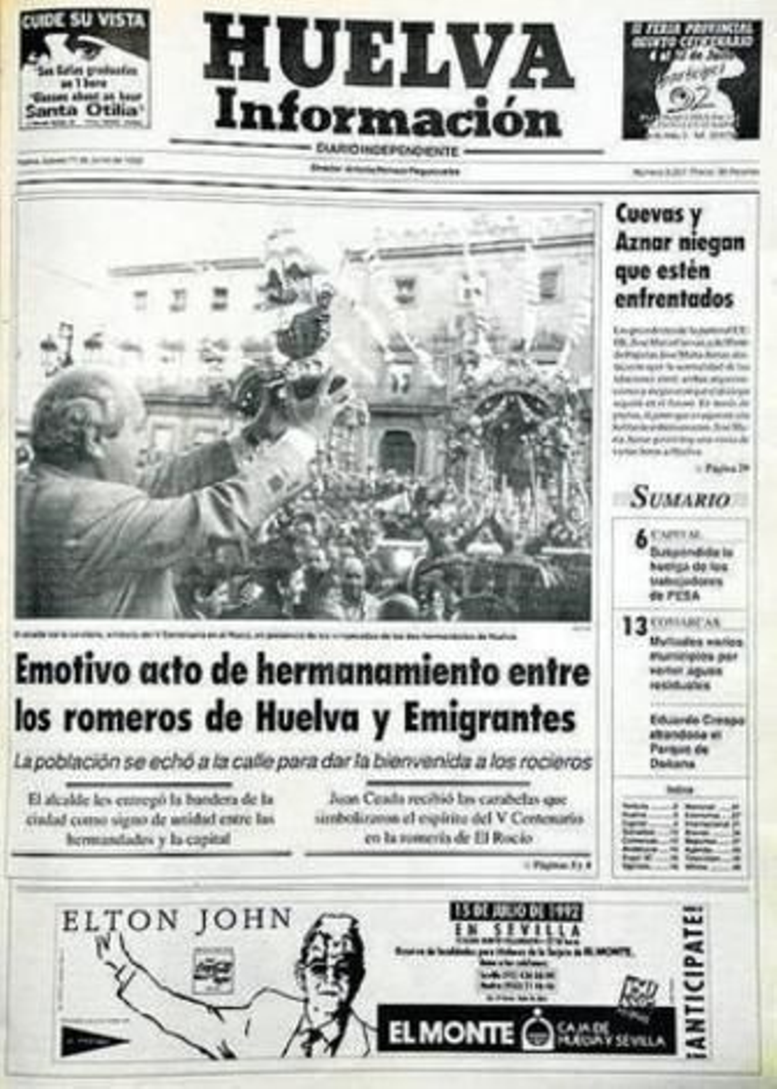 Dos hermandades que continúan día a día ampliando esa devoción a la Virgen del Rocío que se ve plasmada en actos y en hechos concretos, como las sedes tanto de la aldea como de la capital. En estos 30 años de Huelva Información, el periódico ha podido ser testigo de importantes acontecimientos de unos años especialmente intensos, que han hecho crecer a ambas hermandades. Hay datos tan curiosos como la evolución de la comitiva rociera, que, aunque haya podio bajar algo por cuestiones últimas de la crisis económica, se ha multiplicado considerablemente. Aquel año de 1984 se contaron 17 carros adornados, y este de 2013 serán 44. Iban también 240 charrés, 48 tractores y otros vehículos; mientras, este año están inscritos 6 carros cuadrados, 51 jardineras y 62 tractores. Como se ve, se mantiene la tradición aumentando los carros, pero el gran incremento está en los tractores y casi no hay charrets.