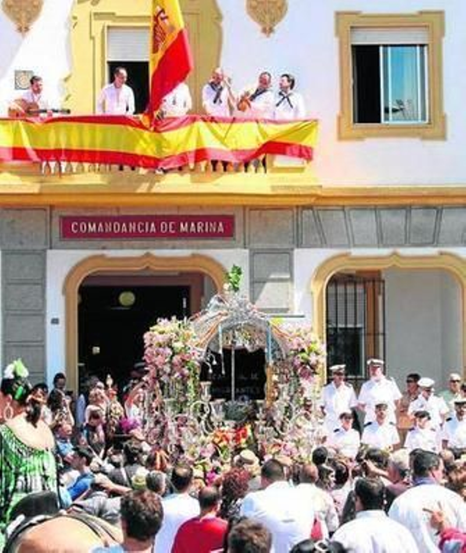 El saludo de despedida de la Iglesia de Huelva se realizó este año a las puertas de la parroquia de la Inmaculada Concepción, hasta donde había acudido el obispo de Huelva, José Vilaplana Blasco, que acompañó al párroco, Diego Capado, en la celebración de los 500 años de la parroquia. La Virgen del Rocío fue colocada en el dintel de la puerta de Méndez Núñez, donde estuvo una representación de la Hermandad del Nazareno. Resultó uno de los momentos más bellos del recorrido de la comitiva. Cuando era el mediodía y se le cantó la salve por el Coro de Emigrantes. El obispo bendijo a todos los peregrinos que se despidieron de Huelva con la Salve Marinera en la Comandancia de Marina, donde le cantó al Simpecado el grupo Quitasueños. Ahí comenzaba la singladura de los caminos hacia las marismas almonteñas.