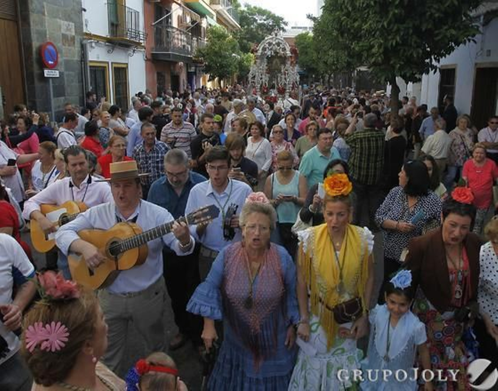Rezos, cantes, silencios, volantes y cubanas se entremezclan en una mañana en la que Triana, el Cerro y la Macarena dibujan la estampa más variopinta del universo rociero.