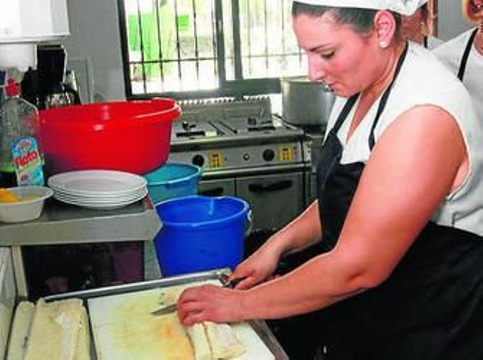 Angelines, una de las cocineras de Emigrantes, se encargaba ayer de que el potaje de bacalao, garbanzos y patatas estuviese listo a su hora, lo que no era complicado si se tiene en cuenta que la joven ha guisado desde hace días en abundancia para los peregrinos que han hecho el camino y los visitantes. Esta es la primera vez que la cocinera trabaja con una hermandad, aunque asegura llevarlo bien y desempeña su tarea con una alegría contagiosa a pesar del calor de los fogones.
