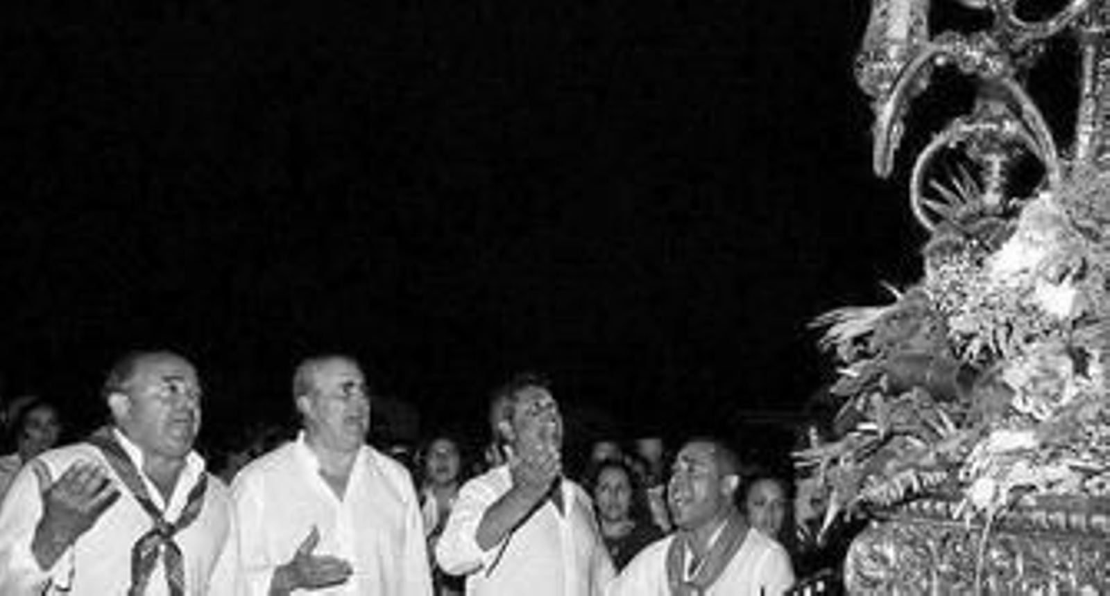 Devoción. Cuando faltan cinco minutos para la medianoche se apagan casi al unísono las luces, comienzan a acallarse las voces, los cantes, las guitarras y se reza el rosario