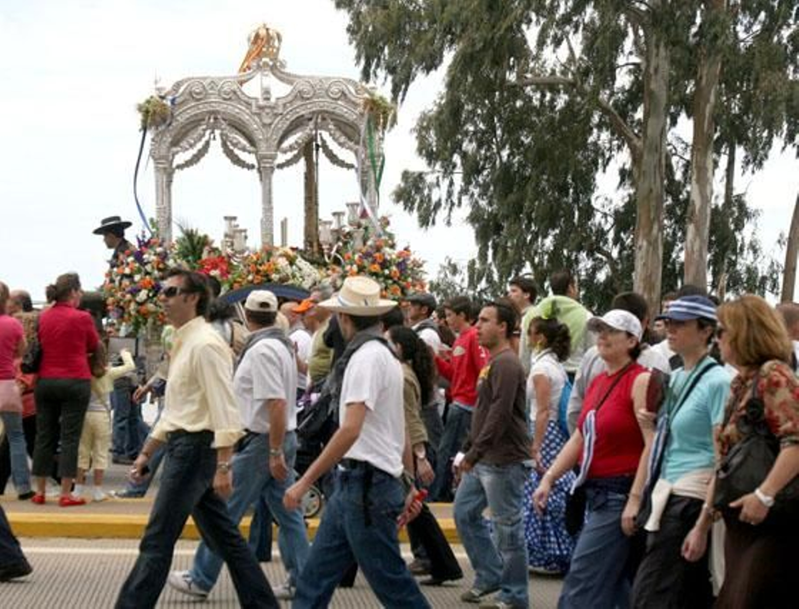 Hubo quejas de algunos que en esta misma avenida y cuando paró la carreta a la altura del muelle de Riotinto increpó a la junta criticando esta actitud de no pasar por la Comandancia de Marina. No fue a más, no llegó la sangre al río, pero sí el cante y la alegría que en ningún momento debía verse enturbiada por nada. Se llegó aquí con bastante rapidez, sobre las once y diez de la mañana, la comitiva se fue extendiendo por la avenida Francisco Montenegro, mientras que todo iba mucho más lento por el centro de la ciudad, como si esto no caminara. Eran ocho kilómetros de comitiva, tanto que si la cabeza de la hermandad se encontraba casi para llegar a la Punta del Sebo, aun había tractores por el Barrio Obrero.