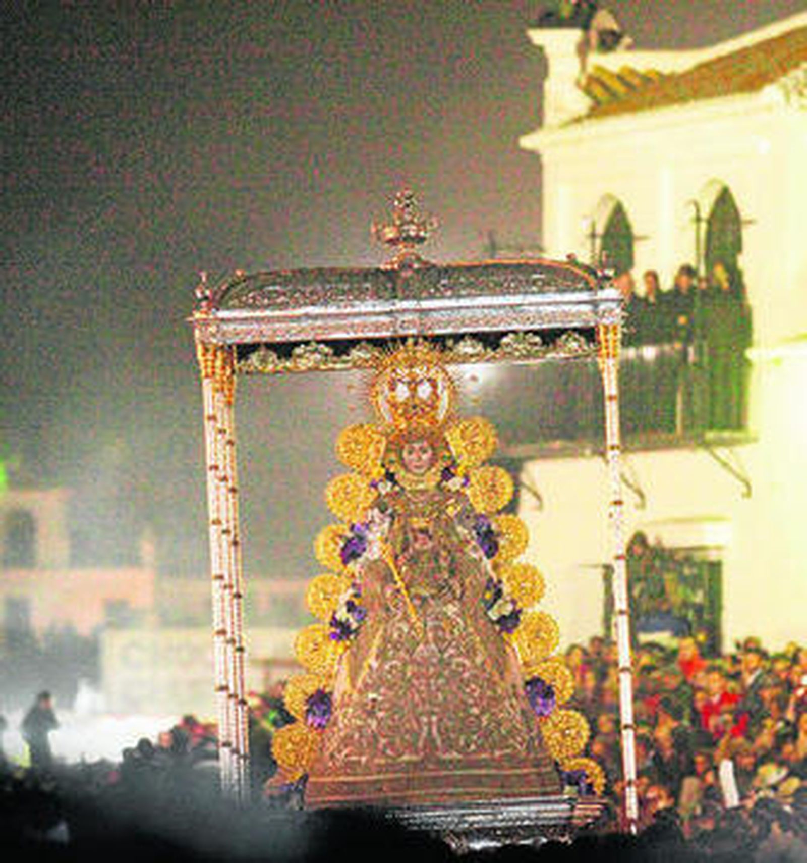 Momentos emotivos se sucedieron a lo largo de la madrugada y la mañana hasta que la Virgen regresó a su altar. La Imagen iba ataviada con el manto de los Apóstoles y adornada con flores moradas, blancas y amarillas que fue luciendo ante cada una de las filiales.