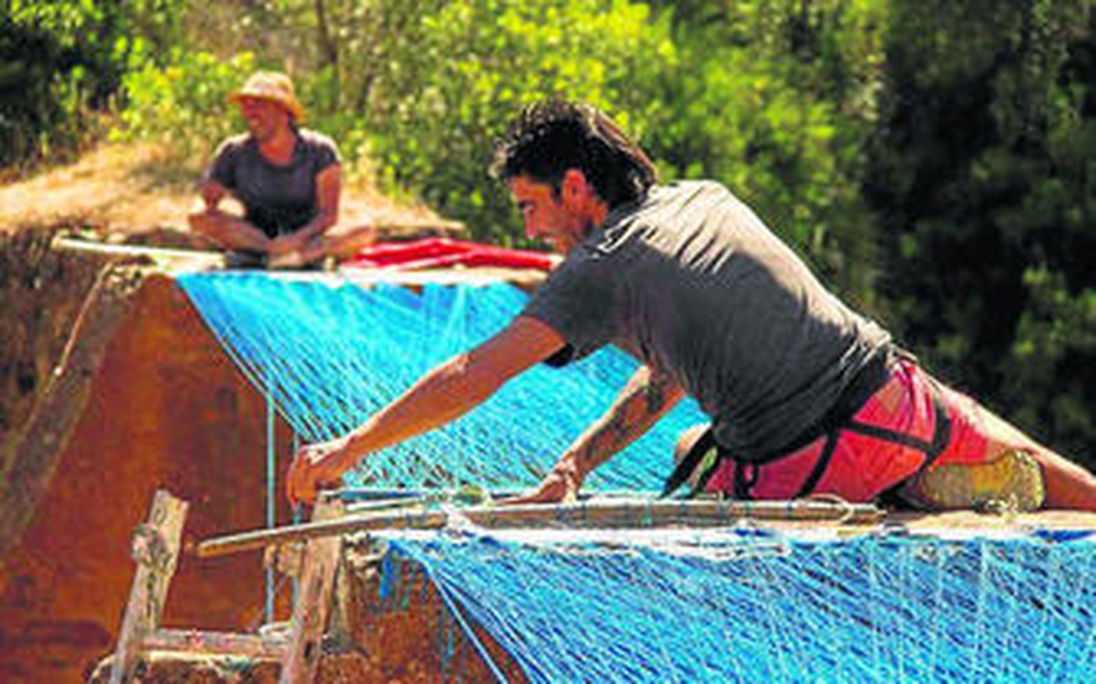 Nada más llegar al lugar en cuestión puede observarse al grupo trabajando bajo una coordinación y concentración absolutas. Romero y Pedrero se encuentran encaramados a los pilares más altos tejiendo los hilos de unión que suplen al, hoy en día, inexistente puente de Mendoza. Abajo, entre un mar de rocas de grandes dimensiones y un calor insoportable solo aliviado por el sonido del discurrir del río, Del Toro, Izquierdo y Zamorano se afanan en preparar el material que irán subiendo a sus compañeros hasta finalizar la obra.
