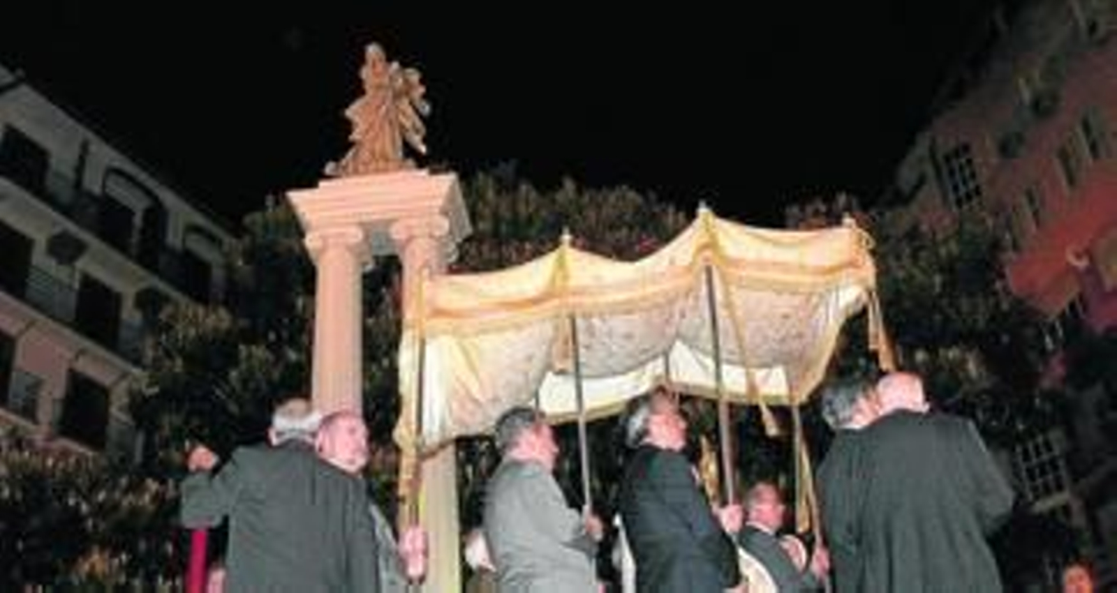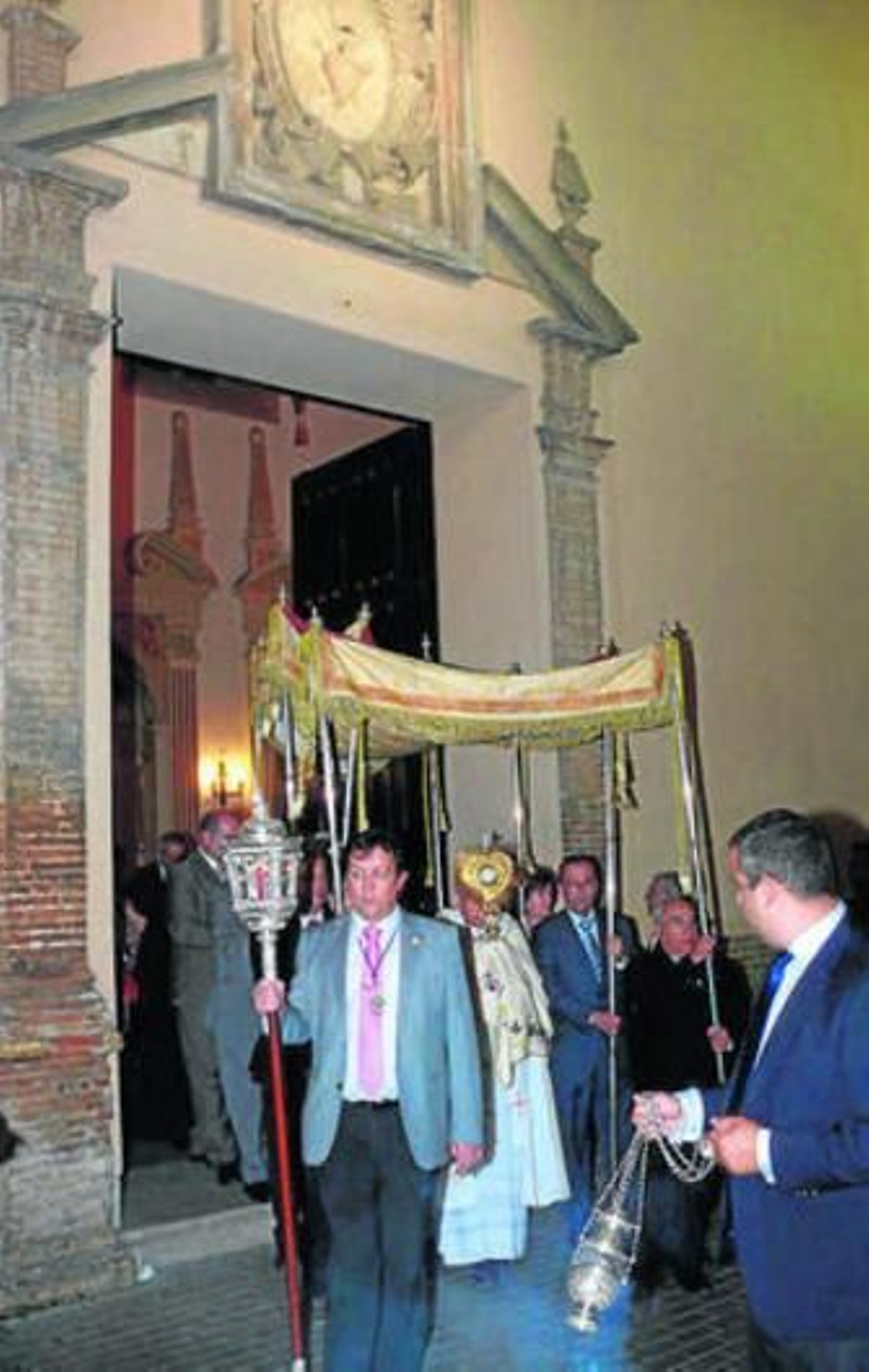 La procesión siguió hacia la Plaza de las Monjas y el día iba rompiendo sobre la ciudad con el acompasado despertar de las golondrinas. En la iglesia, las banderas volvieron a rodear al Señor. El obispo procedió a la bendición y se cantó la Salve ante la Inmaculada de la iglesia. El obispo invitó a "testimoniar la eucaristía en espíritu y verdad" y "a repartir el amor que se tiene al lado del Señor".