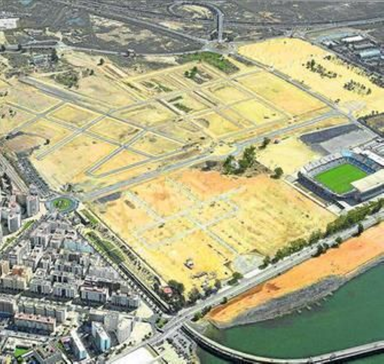Las fotografías aéreas encargadas por la constructora Cabbsa -a las que ha tenido acceso este periódico- documentan el estado de ejecución de unos trabajos que han culminado el 80% de los movimientos de tierra y la preparación de explanadas de las arterias que vertebrarán esta mini-ciudad que tantos años lleva en la incubadora, a expensas de pugnas políticas, recursos judiciales y el freno terminante de la crisis. Contra viento y marea, el Ayuntamiento y el Grupo Trusam, promotor del Ensanche, vieron este verano cumplido el primer hito en la programación de las obras: el traslado del Recinto Colombino al nuevo parque ferial de las traseras del Club de Tiro de Pichón. Siguiente parada: habilitar toda la infraestructura base para la construcción de edificaciones, comenzando por las 24 viviendas que Cabbsa tiene previsto iniciar en el segundo trimestre de 2013.