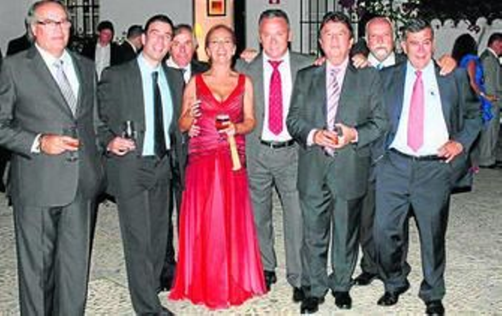 La ceremonia, que llevaban tiempo preparando, se desarrolló por el rito protestante luterano con asistencia de sus familiares y amigos, un grupo de los cuales recogemos en la fotografía que les ofrecemos, figurando de izquierda a derecha Germán Domínguez, Gonzalo Vélez, María del Reposo Navarro (madre del novio), Gregorio Duque, Manuel Vélez, José Malavé. Por detrás aparecen Rafael Moreno, a la izquierda, y José Senra.