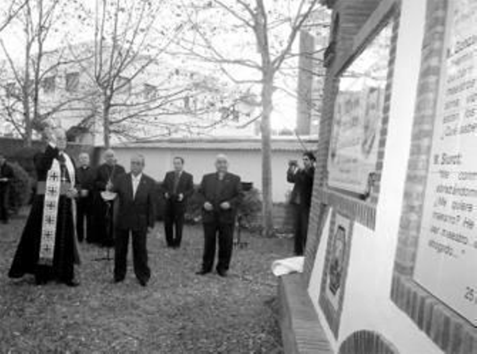 Como invitado especial a la ceremonia se encontraba el cardenal arzobispo de Sevilla, Carlos Amigo Vallejo, y todos juntos se dispusieron a arrebatar el manto que cubría el gran secreto. Caía la tarde sobre el horizonte de Huelva como las hojas en el jardín del colegio en el momento en que aparecía entre la ovación del público un monumento hermoso que reza: "En memoria y agradecimiento por una gran obra -las Escuelas- y una vocación - ¡Siurot maestro!". Bajo esta inscripción, flanqueada por las imágenes de González y Siurot, podía leerse el lema del centro educativo: "100 años... educando. Seguimos sus huellas".