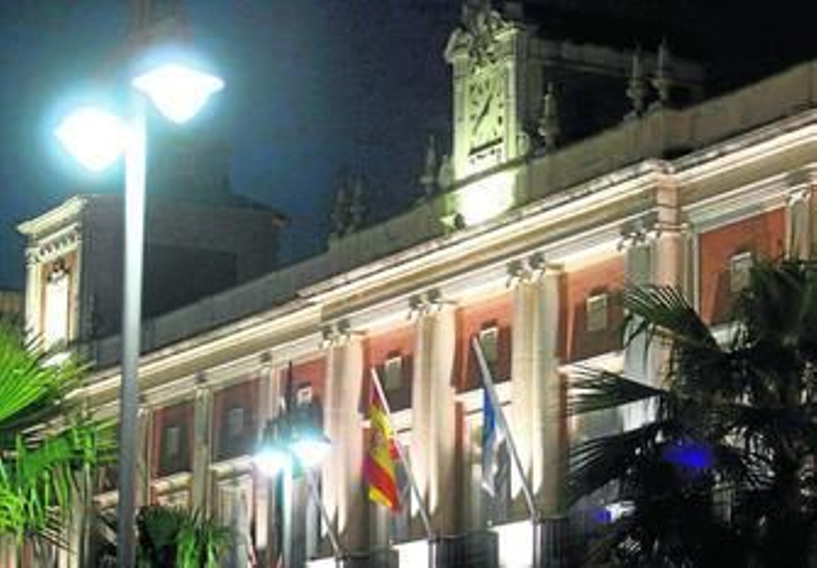 Alumbrado público junto a la fachada del edificio consistorial, en la Plaza de La Constitución.