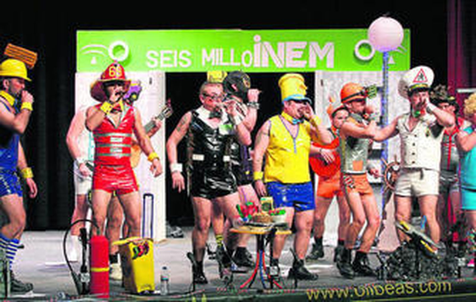 LETRA. José Carrasco y Francisco Manuel Contreras. MÚSICA Y DIRECCIÓN. José Carrasco Rodríguez. PRESUPUESTO. 3.000 euros. AÑO ANTERIOR. Los mentirosos, 5º Premio. COMENTARIO. En pasodobles no se andan con florituras. El primero a la represión y los palos en las manifestaciones; el segundo, al voluntario. Cuplés y popurrí que hacen reír. Rumbo directo a la final.