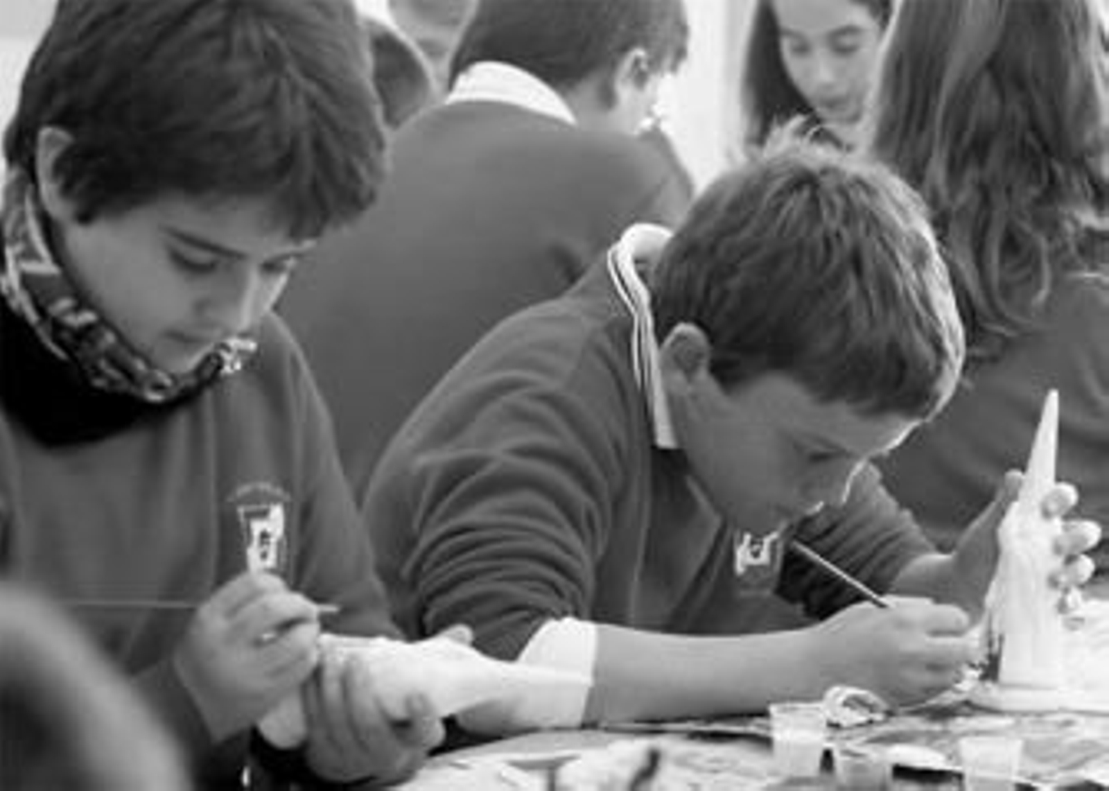 Entre pinceles, pinturas, vasos de agua, y papeles de periódico, los alumnos de 6º de Primaria del colegio Francés de la capital ya han comenzado a vivir en su particular Semana de Pasión. Desde el Miércoles de Ceniza, las horas de Artes Plásticas las dedican a 'convertir' en nazarenos de las distintas hermandades de Huelva a penitentes de escayolas, pintando sus capas y túnicas con los mismos colores de la cofradía elegida.
