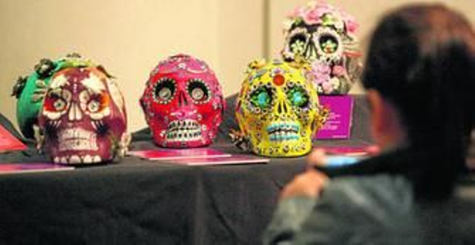 Rituales y arte se unen en este festejo, en el que las artísticas calaveras de la exposición Calacas, Calaveras y Calaveritas, de las creadoras María Luisa Rizo y Martha Funtanet, toman el protagonismo, una colección de sesenta y nueve piezas únicas de la artesanía mexicana, realizadas con una técnica original de papel maché con incrustaciones de materiales muy diversos, entre ellos, estaño, piedras, vidrio, pipas, garbanzos y conchas. Junto a ellas, dichos populares relacionados con la muerte.