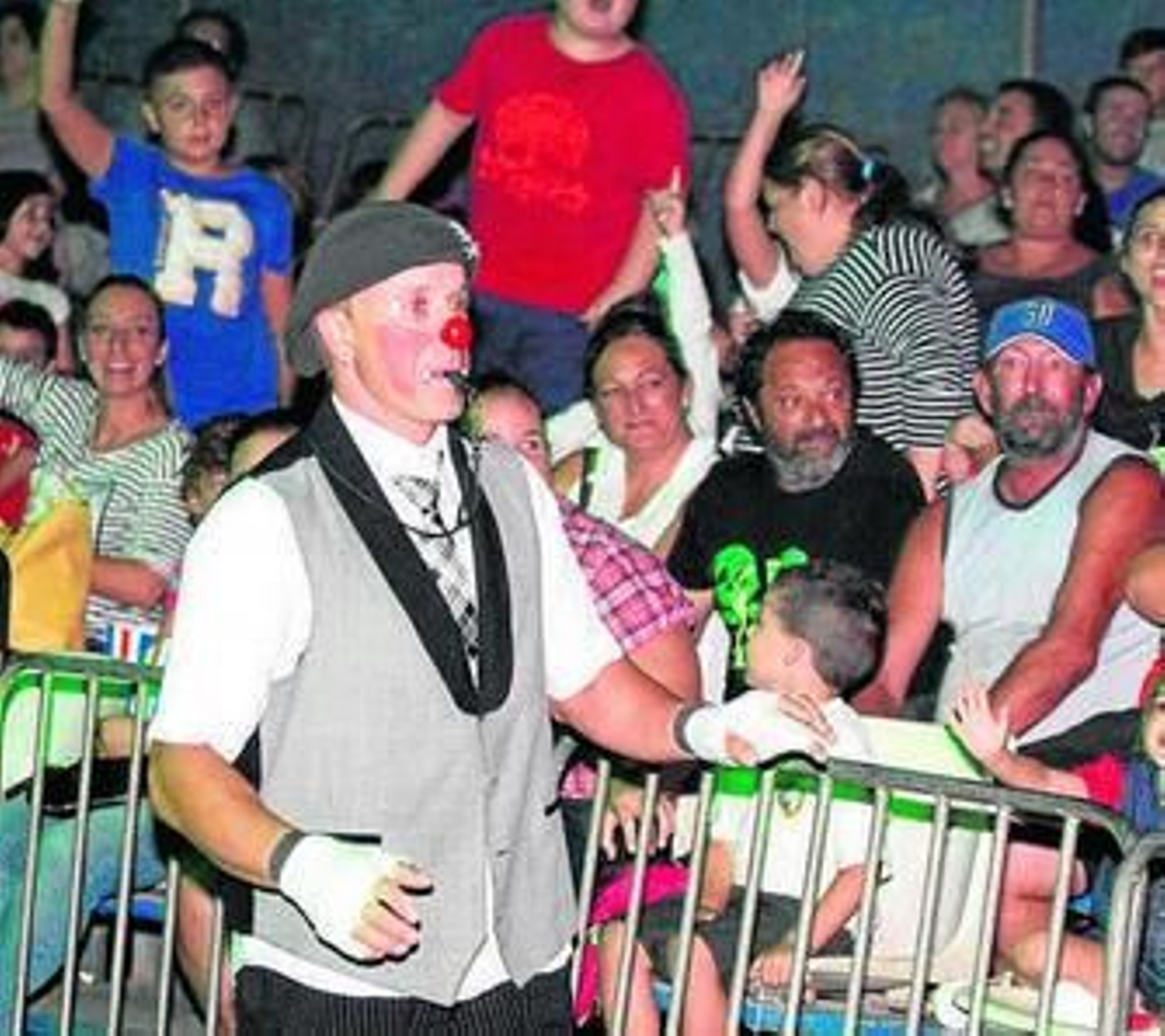 Los payasos hicieron reír con sus golpes de humor y sus gag a grandes y mayores. Salieron entre número y número y requirieron la participación de los niños en el escenario. No les fue difícil encontrar ayudantes, ya que la mayoría de los pequeños se ofrecieron como voluntarios.