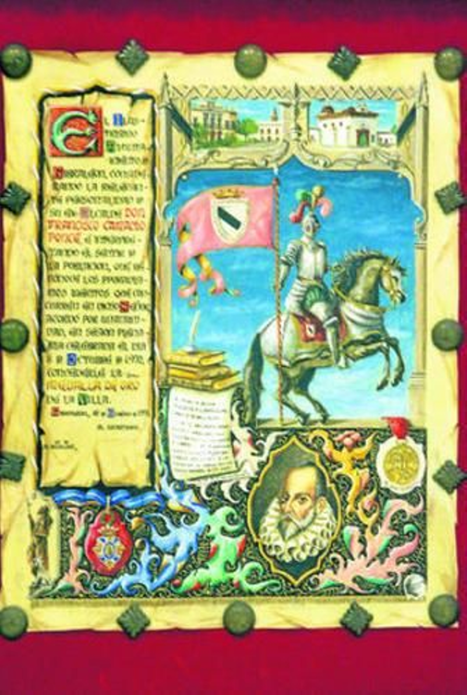Poco tiempo después, un querido compañero de oficina, ya fallecido, me indicó que había tratado, sin mi consentimiento, la confección de un pergamino para Paterna del Campo. Protesté de la decisión de aquél, pero me lancé a la empresa, principalmente para no dejarlo en mal lugar; lo hice y creo que gusté…".