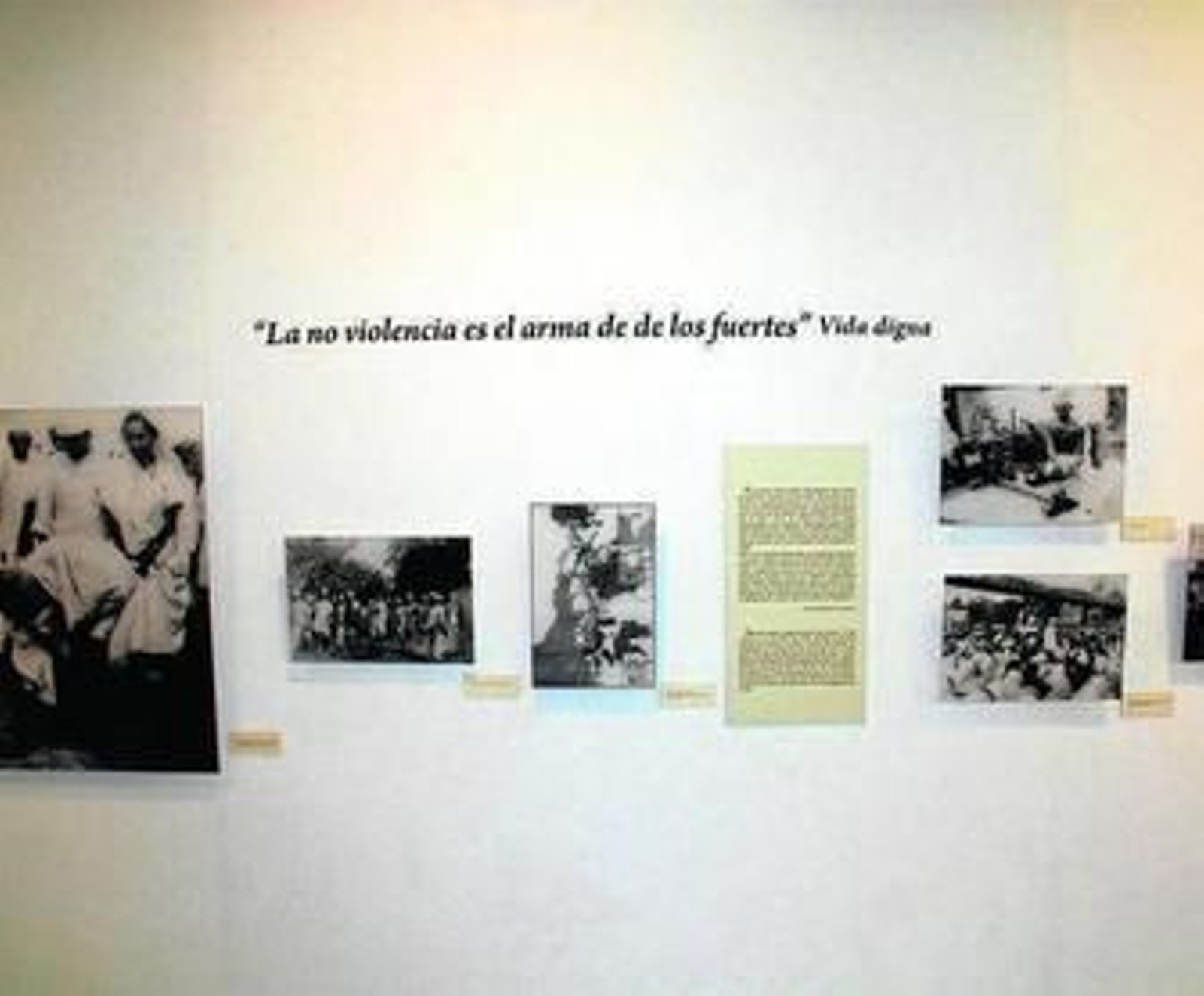 La exposición incluye, además de la muestra fotográfica (acompañada de citas y textos originales), una selección de documentales que muestran la voz y la música favorita del Mahatma, uno de ellos realizados por el cineasta Spike Lee.