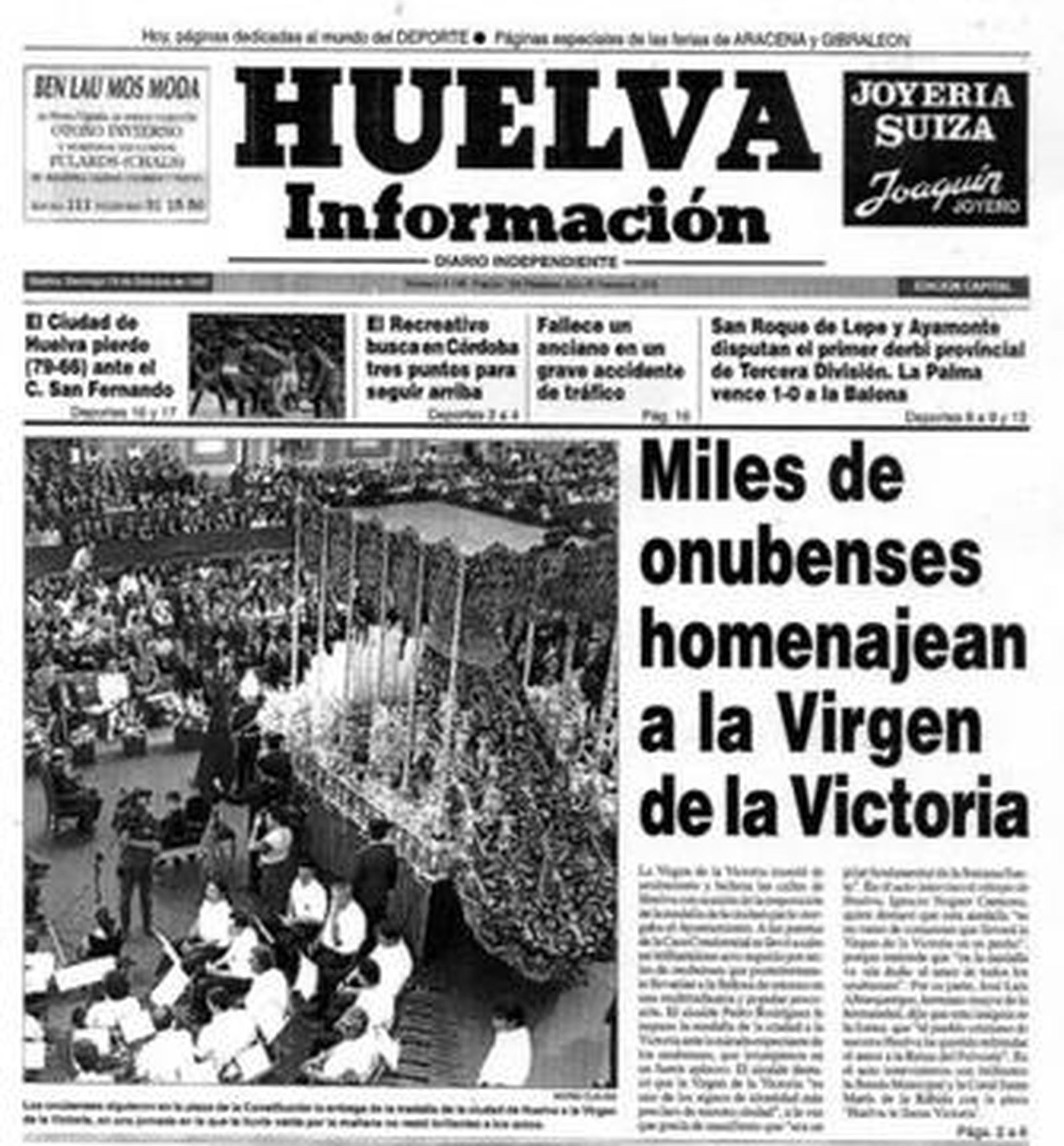 En esta etapa de oro de las cofradías vividas por Huelva en las tres últimas décadas, Huelva Información se ha convertido en el testigo de los grandes acontecimientos que hoy son historia y que avalan la puesta en marcha de otros como el que ahora se está preparando de la coronación canónica de María Santísima de la Victoria.