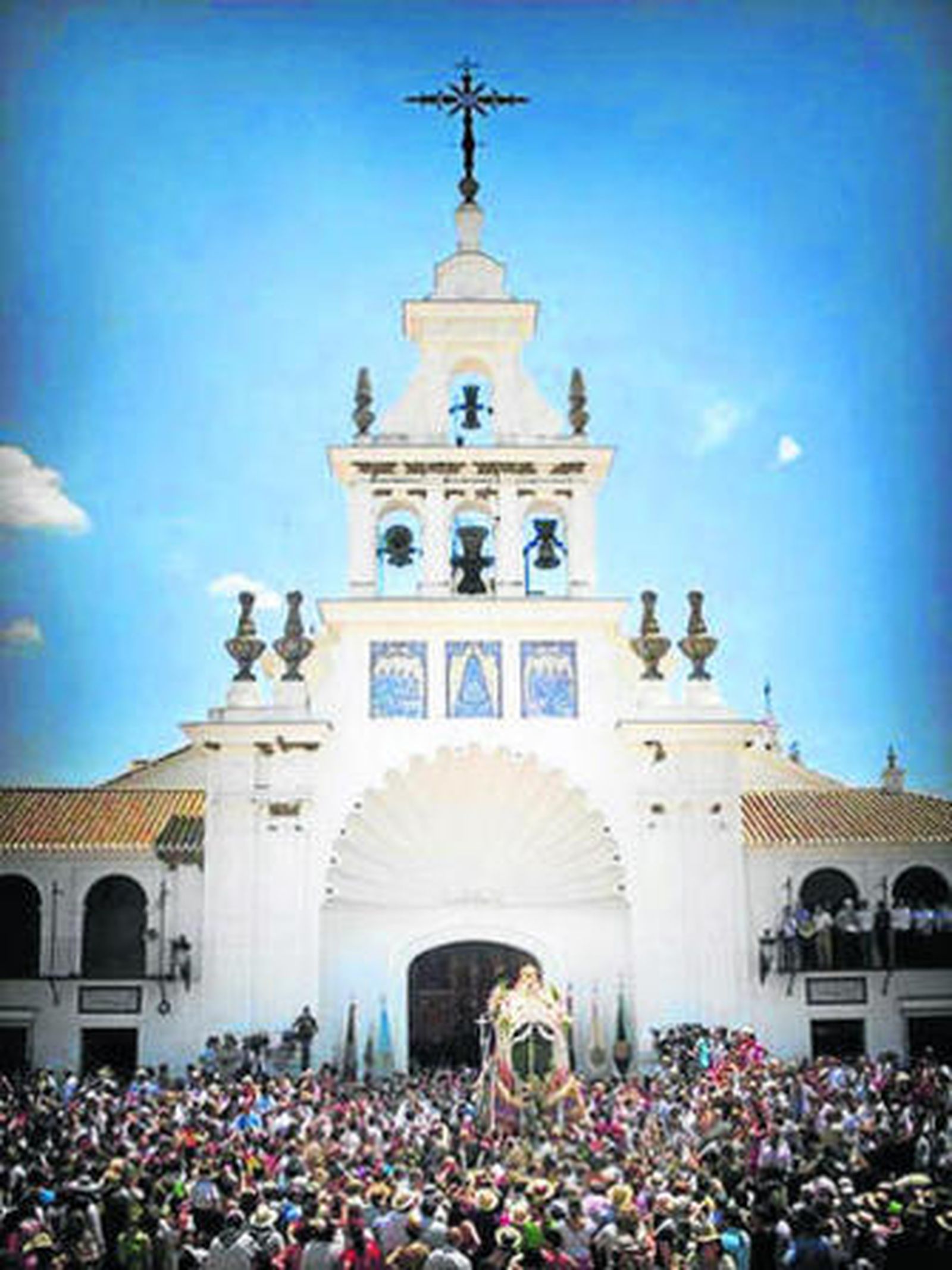 La Hermandad de Huelva cuenta con fotografía para anunciar la romería del próximo año y lo hace con una imagen que recuerda el momento en el que el Simpecado de los rocieros onubenses está en el interior del santuario delante de la Virgen del Rocío en su paso, después de haber retornado a su ermita por el incidente ocurrido con la rotura del varal.