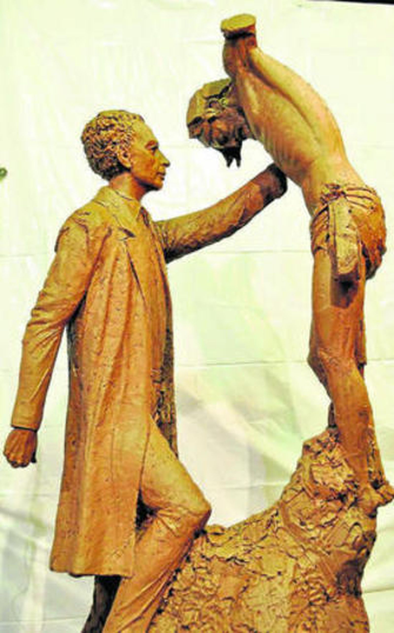 Para visualizar el respaldo institucional a esta iniciativa, el decano del Colegio Oficial de Arquitectos de Huelva, Gonzalo Prieto, se trasladó esta semana al taller donde se perfila el grupo escultórico, de imponente dimensión, que se encuentra terminado en su molde de arcilla y preparado para su definitiva fundición en bronce y representa la figura del escultor León Ortega modelando la forma del Cristo de la Lanzada que va naciendo de una roca, como símbolo del crecimiento material de su obra. El conjunto irá sobre un pedestal de acero cortén de dos metros de altura.