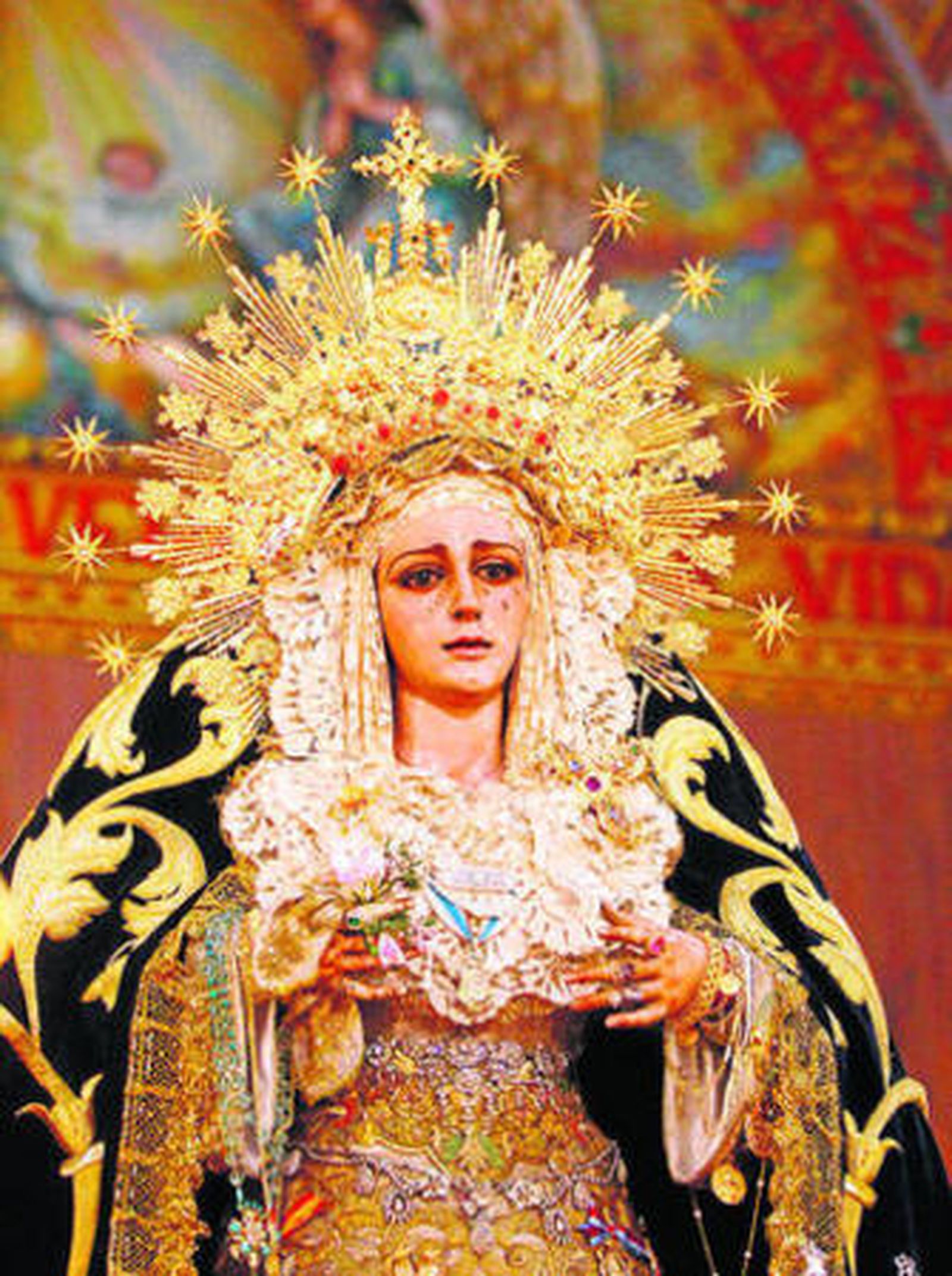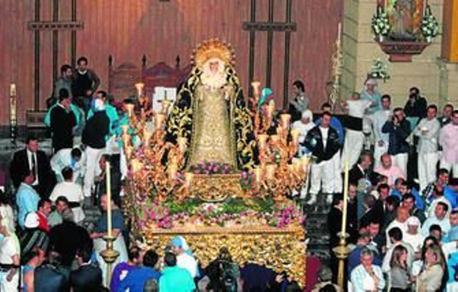 El tiempo de espera sirvió para estar cerca de la Virgen, mucha gente de siempre de la hermandad, como Rafaela Monís que esperaba en el primer banco sin quitarle mirada a su Virgen de la Victoria.