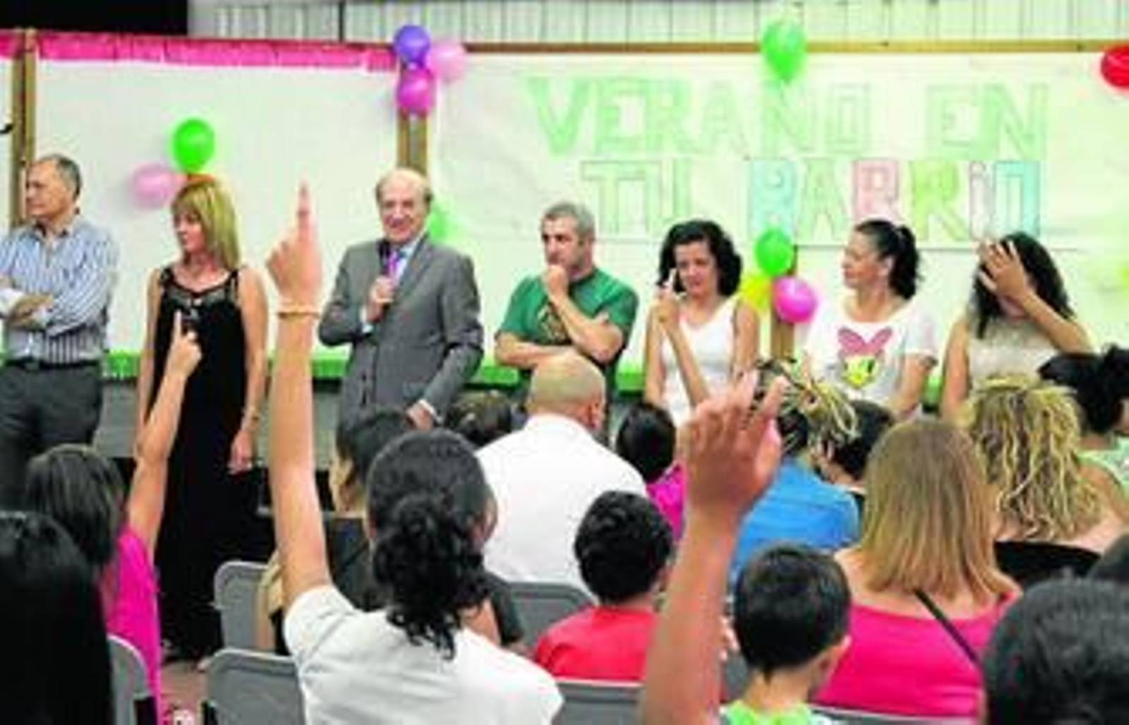 El Centro Social Lazareto acoge uno de los campamentos urbanos que se llevan a cabo en la capital onubense. El alcalde de Huelva, Pedro Rodríguez, y el vicepresidente de la Asociación de Industrias Químicas, Básicas y Energéticas (Aiqbe), José Luis Menéndez, acompañados por la teniente de alcalde de Servicios Sociales y Juventud, Pilar Miranda, inauguraron ayer oficialmente el campamento urbano del Lazareto, que está en marcha desde principios del mes de julio.
