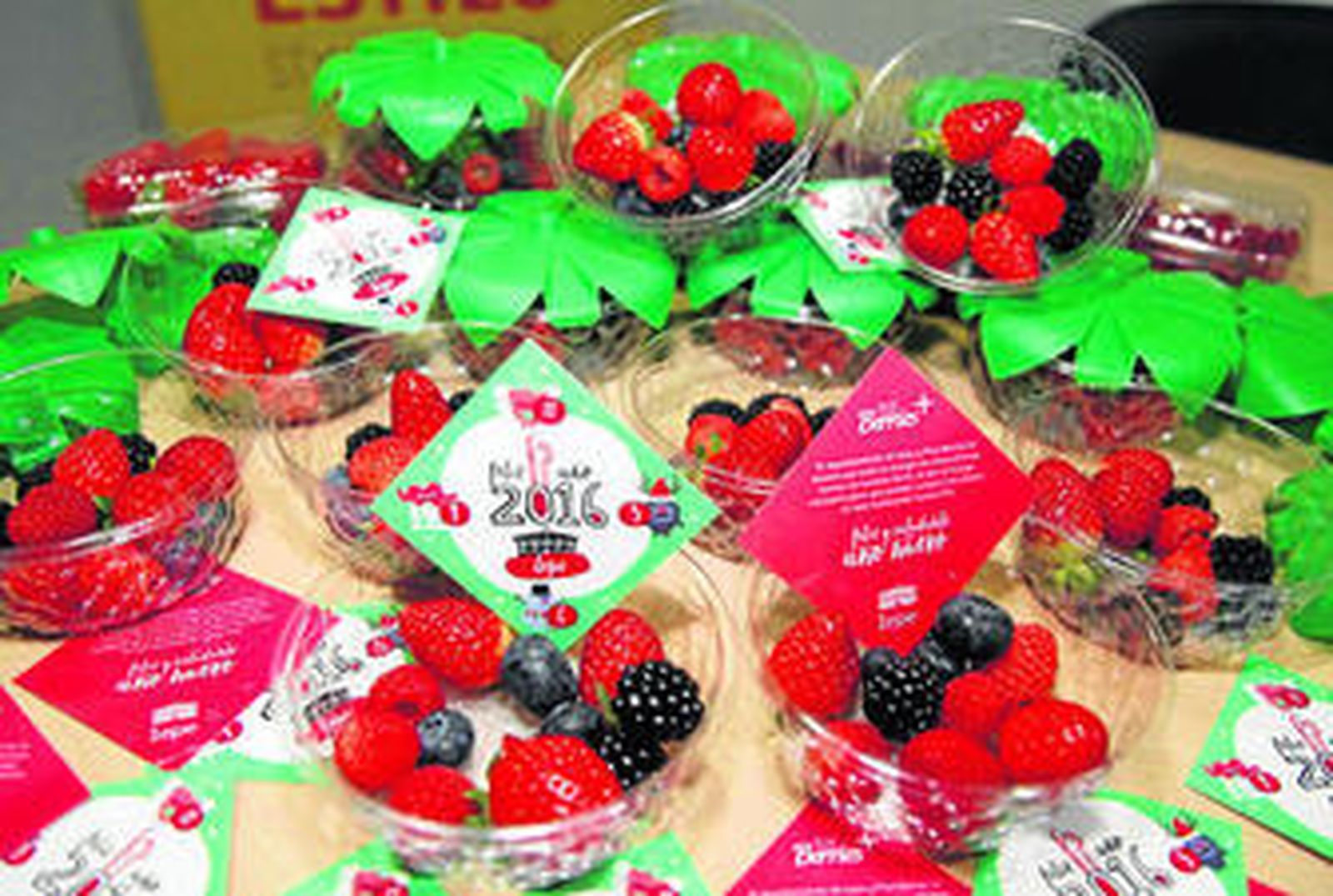 Además, es la primera vez que se da la bienvenida al año con doce berries, en lugar de con las tradicionales uvas, para lo cual el grupo de empresas agrícolas Plus Berries, integrada por cinco productores onubenses: Agrícola del Bosque SL, Frutas Hermanos Pulido, Frutas Remolino, Tilla, y la empresa lepera Agromartín, han facilitado un millar de tarrinas con la combinación de los cuatro frutos, atendiendo a la demanda prevista de 1.000 personas que se darán cita en las calles del centro de Lepe para adelantarse a la llegada de 2016.