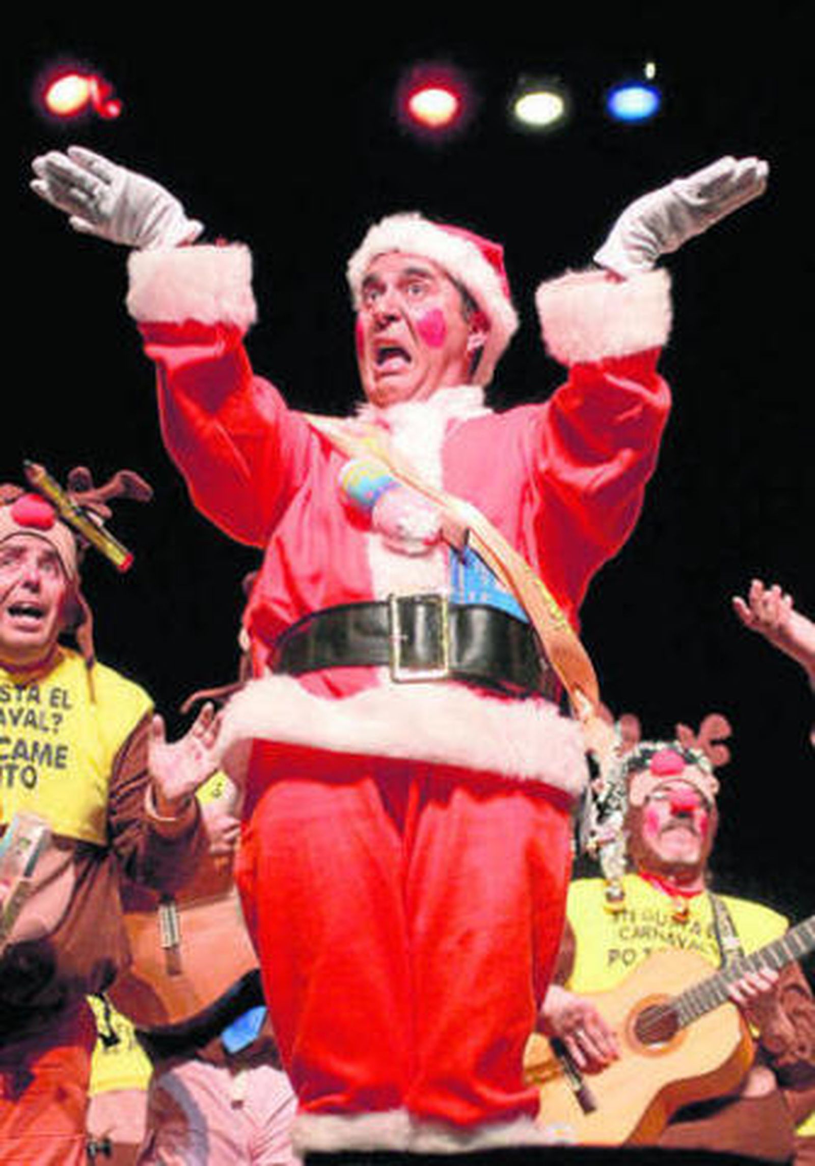 La comparsa onubense Los Pinturillas puso color a la noche tratando temas como la crisis desde una visión positiva. El Recre, muy presente en la composición de las agrupaciones.