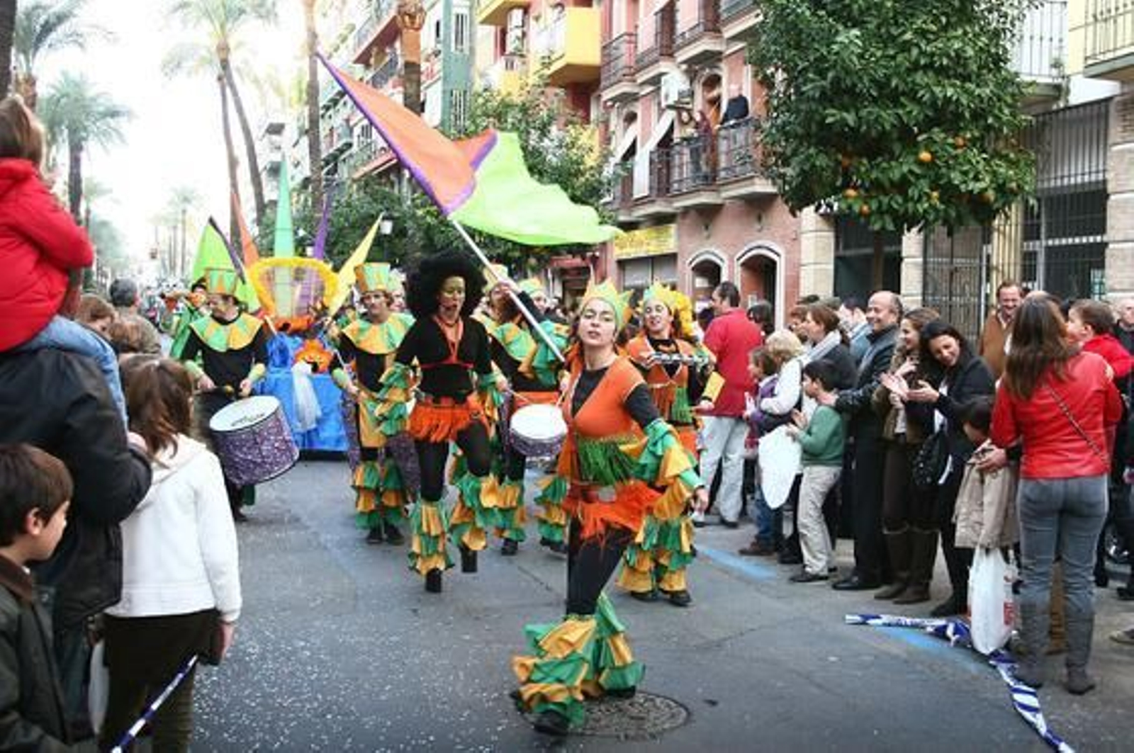 A son de batucada y dejando un rastro compuesto de confetis, serpentinas y caramelos, la comitiva siguió su amplio recorrido. Aun no se habían alcanzado las 18:00 cuando la cabalgata ya llegaba a Quintero Báez. Atrás quedaba el centro y barriadas populares como El Carmen, Las Colonias o La Navidad.