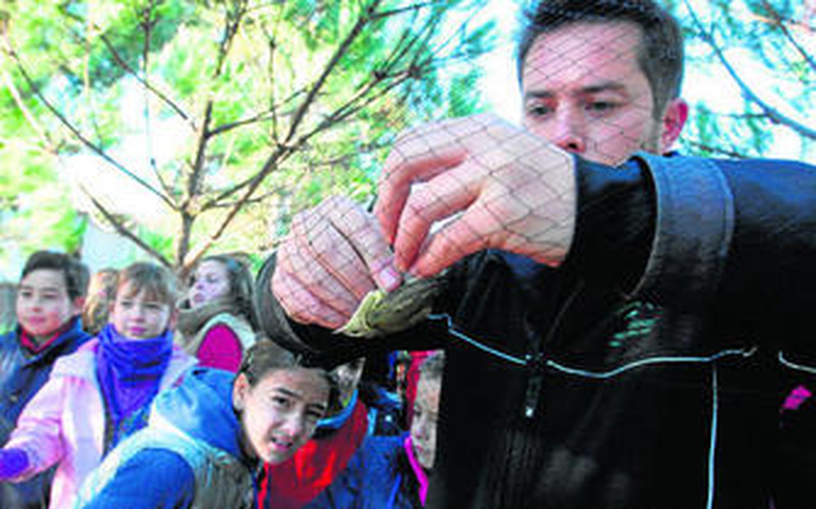 Ayer la jornada giró en torno al reconocimiento y anillamiento de aves. Los críos ayudaron a colocar las redes en el entorno del centro de visitantes y aguardaron a que los pájaros quedaran atrapados en ellas para comenzar la identificación, clasificación y registro de los distintos ejemplares. Dirigidos por el ornitólogo José Manuel Sayago, los niños con la guía de aves en la mano, fueron rellenando las fichas (especie, sexo, tamaño, peso...) que conforman sus cuadernos de campo .