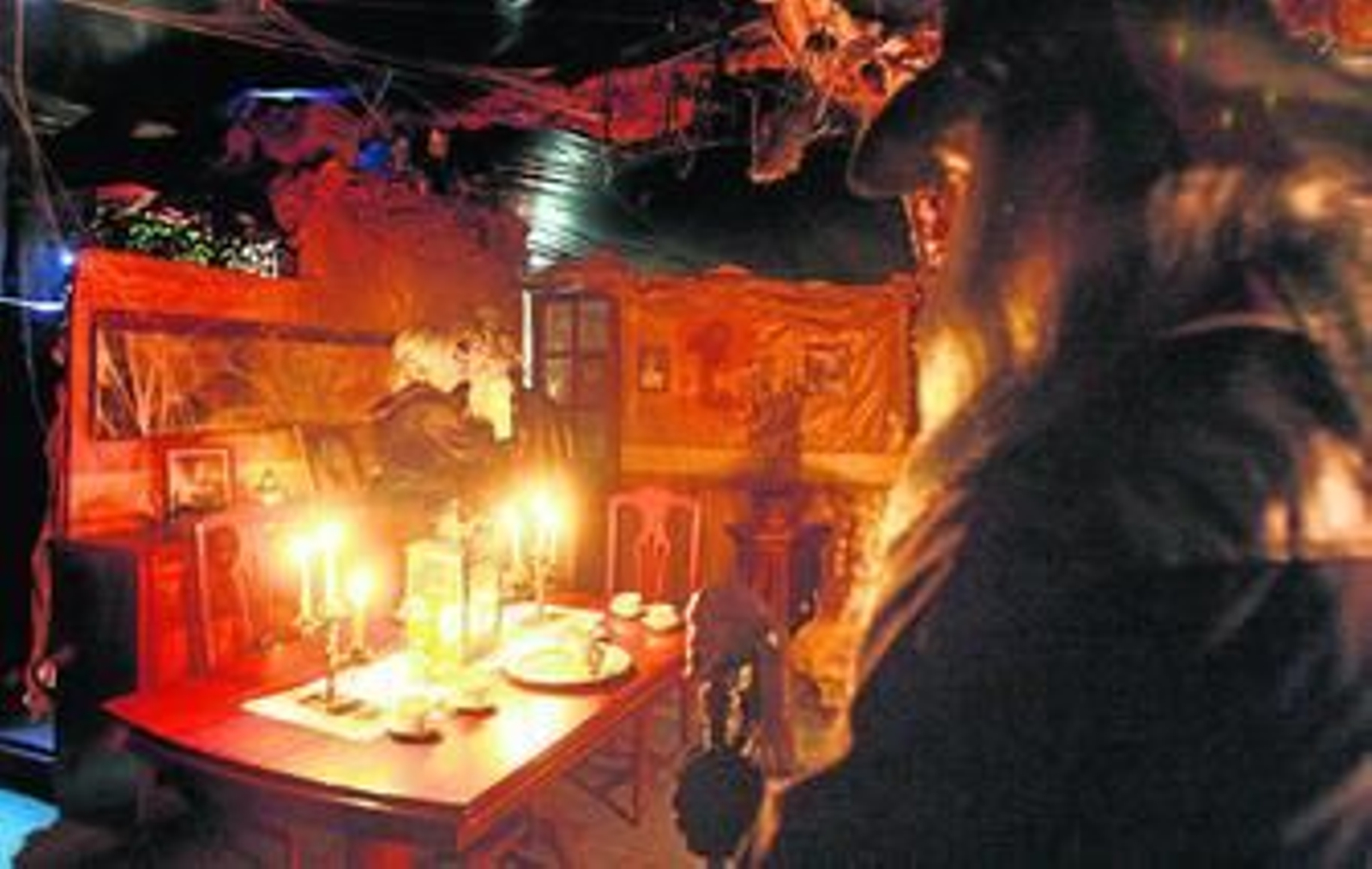 El recorrido, lleno de sobresaltos, comenzó en una plaza por la que deambulaban zombis y brujas, desde la que accedieron a la mansión de los Condes del Molino, donde fueron recibidos por el mayordomo, que los fue conduciendo por las diferentes dependencias del inmueble. Empezaron por el salón, los condes estaban acompañados por su hija y una amiga del matrimonio, y los atendían varias doncellas. De allí se dirigieron a la cocina, en la que cuatro cocineras se encargaron de que los invitados fueran bien servidos.