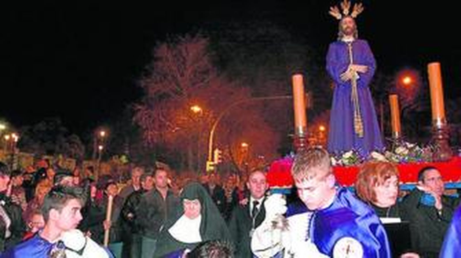 La parroquia de Nuestra Señora del Pilar abrió sus puertas justo a las 20:30. En su interior, el párroco Víctor Bermúdez conminaba a los allí presentes a considerar los sufrimientos de Cristo: "Jesús nos da la mayor prueba de su amor en que murió por nosotros".
