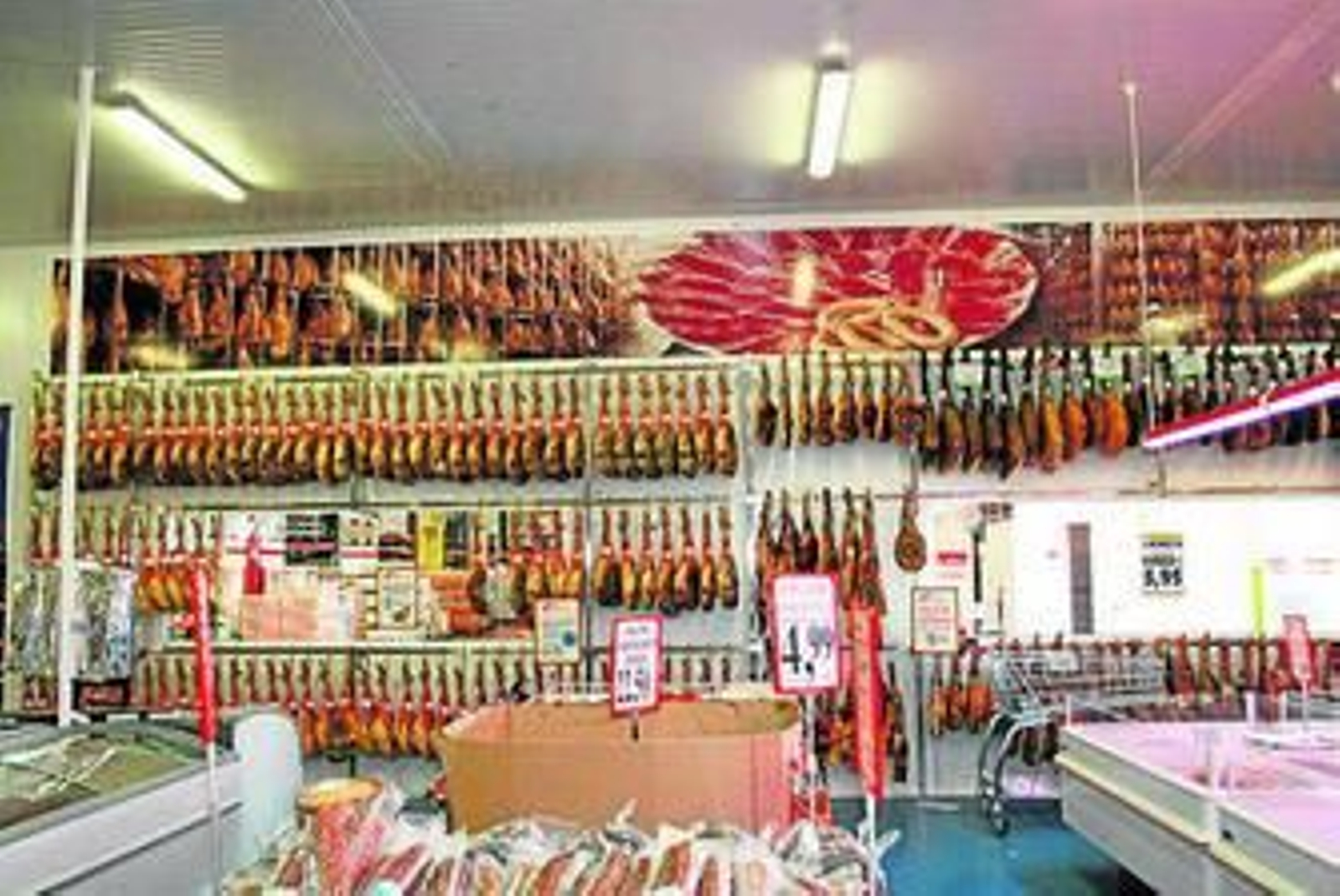 Dentro, la amplia sala de venta, de 3.000 m(2), se encuentra dividida en dos partes, básicamente, poniendo de manifiesto el acuerdo de colaboración existente entre Caro Ruiz, propietaria de la marca, y Martínez Castell, empresa dedicada a la comercialización de carnes frescas de primera calidad.