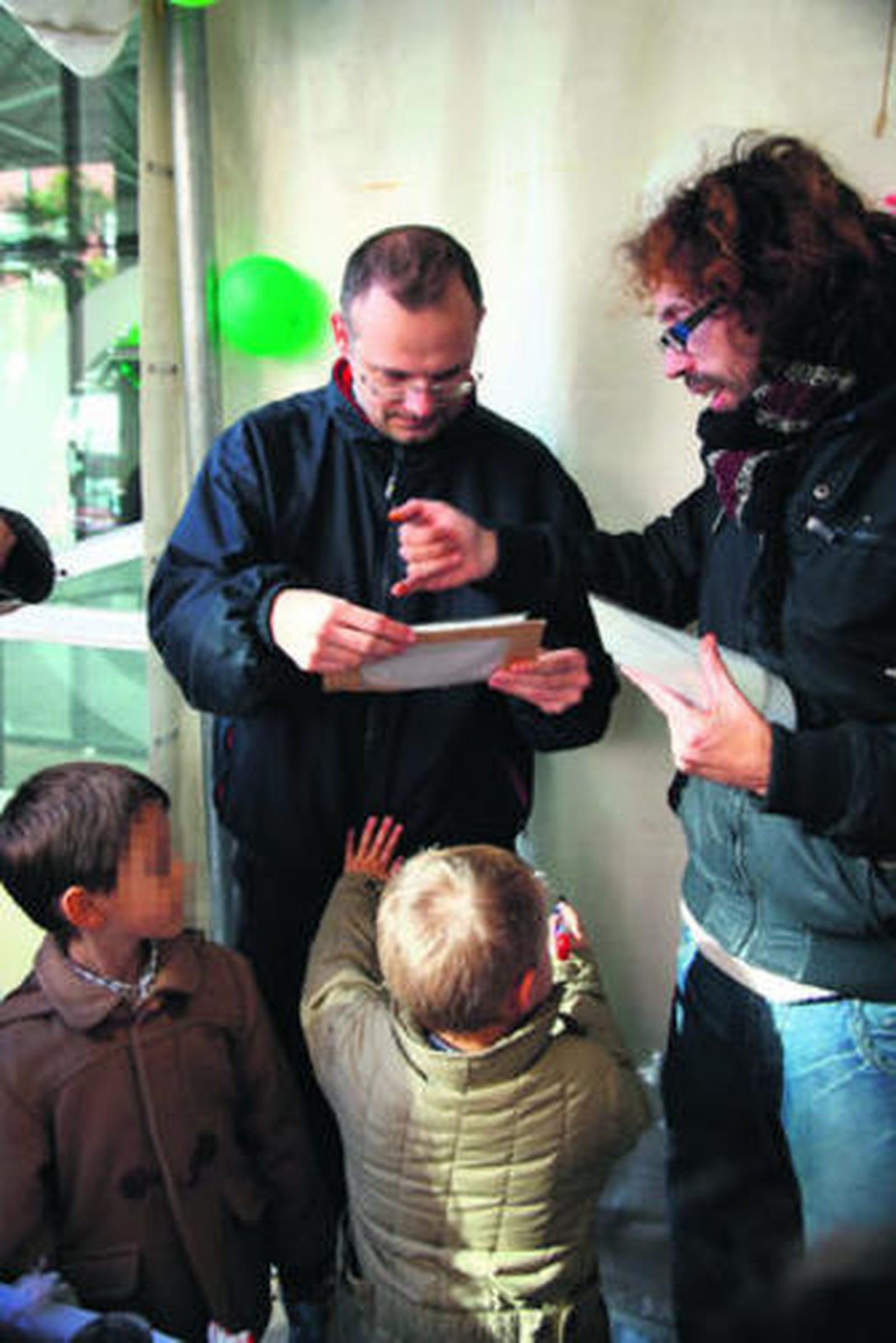 La gaditana Eva María Acuña y su compañero Carrillo entretienen con juegos, malabares y manualidades a los pequeños, de forma que, mientras tanto, sus padres pueden visitar el mercado y realizar sus compras con total tranquilidad.
