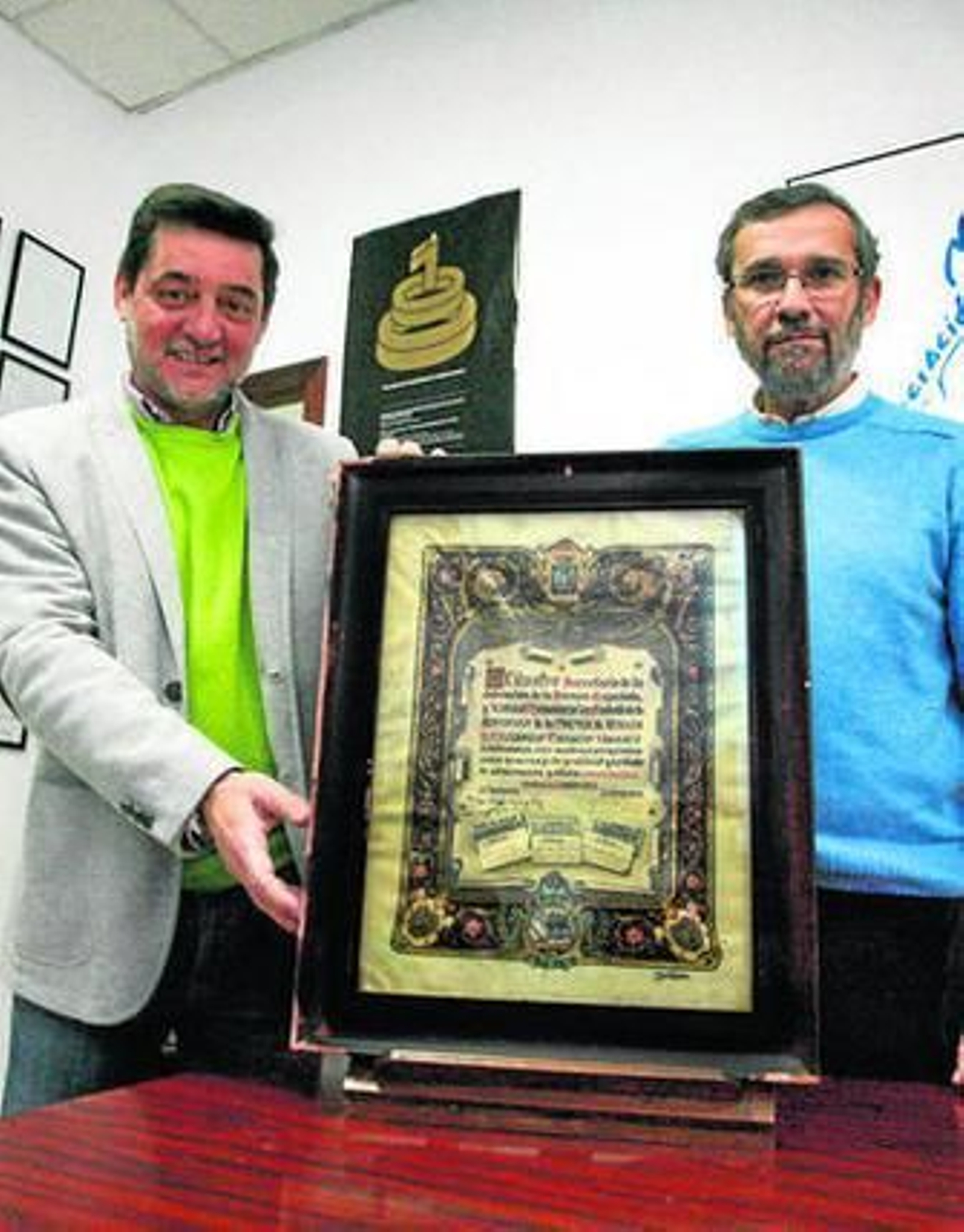 Es una aportación del trabajo de investigación que está realizando Eduardo J. Sugrañes, jefe de Cultura de Huelva Información, sobre la historia de la Asociación de la Prensa de Huelva y que ha adquirido la propia asociación en una subasta, convirtiéndose en su documento más antiguo. El pergamino fue presentado ayer por Rafael Terán, presidente de la Asociación de la Prensa de Huelva.