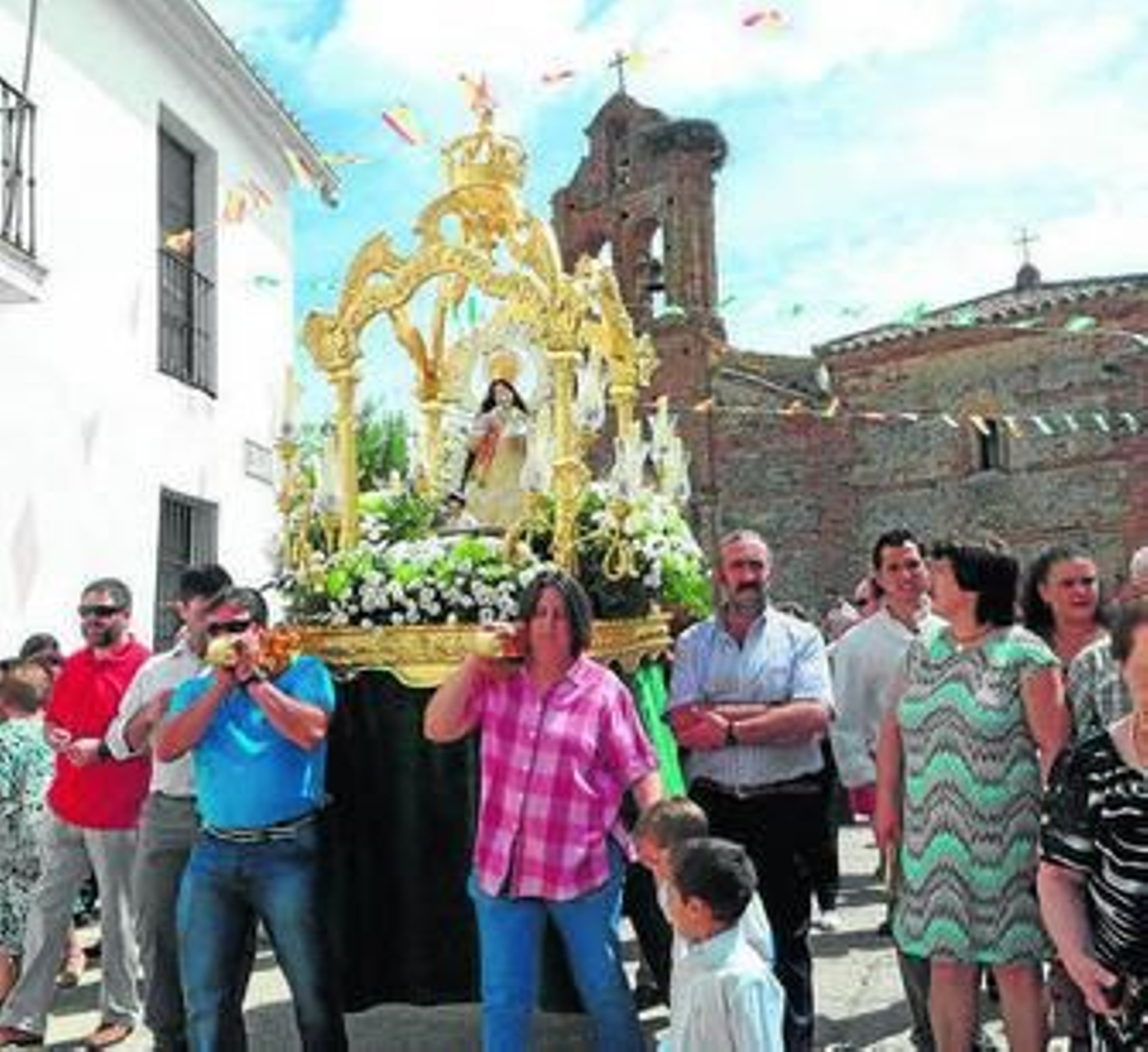 La imagen de la Virgen de la Cabeza sale en procesión el domingo por las calles del pueblo