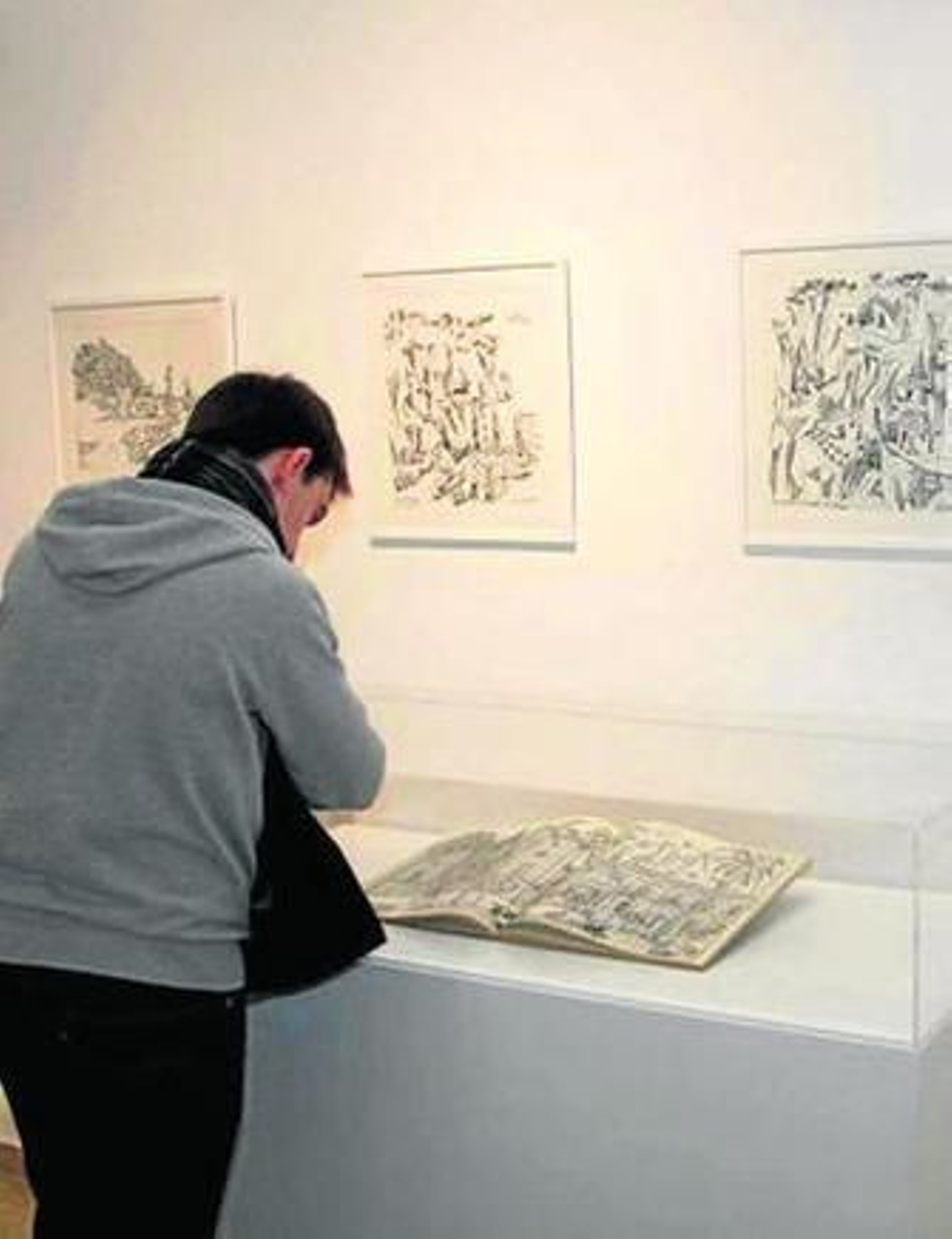 Casi 200 dibujos y un óleo del artista se exhiben en la Casa Colón Las obras, donadas por su viuda, son recuerdos onubenses que vuelven a su lugar de origen