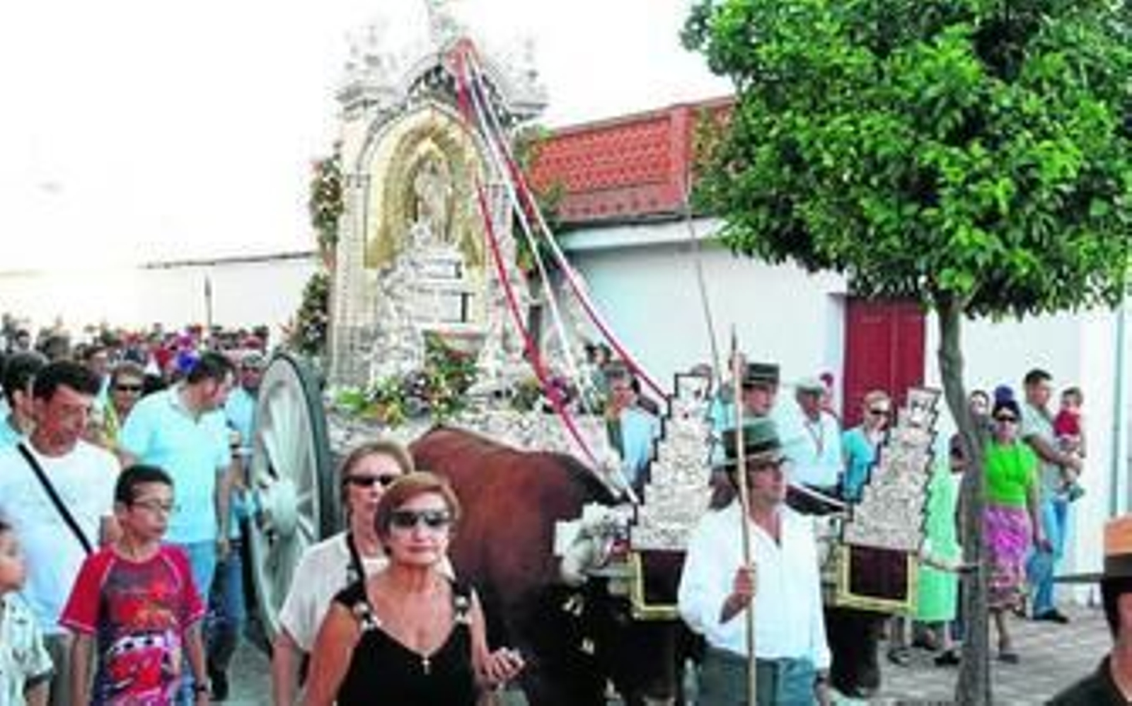 Es un momento de emoción y devoción, punto de contraste con el divertimento previo y posterior, en el que los romeros disfrutan de sus amigos, de cantes y bailes improvisados, de paseos a caballo, a pie o en carreta. Pero todo eso para y alrededor de la imagen de la Virgen en procesión sólo gira el fervor de sus devotos, con el trono sobre sus hombros.