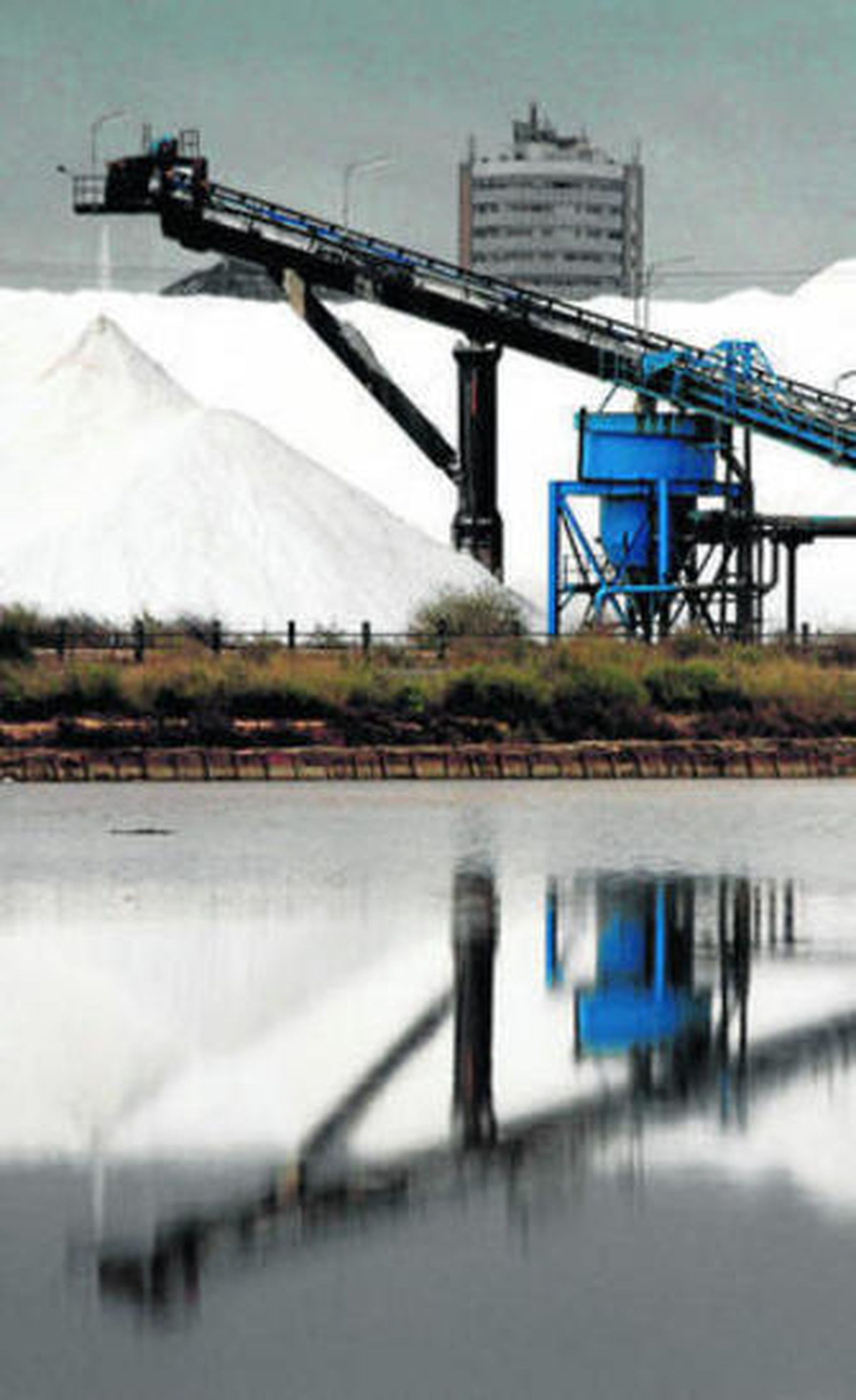 Muchos onubenses desconocen que la sal marina que adquieren en las tiendas de la cadena Mercadona se produce y envasa en Huelva, en pleno Paraje Natural Marismas del Odiel, cuya singular montaña blanca de cloruro sódico situada en la carretera hacia el Espigón ha logrado empaquetar para su venta una empresa puntera.