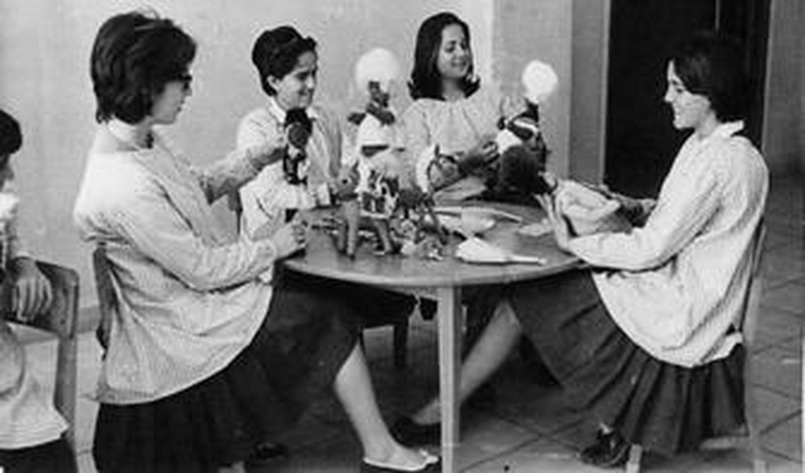 Lo mismo que se vivían los grandes belenes que se montaban para Navidad, con campaña de recogida de comida, ropa y dinero, que luego se repartían a las familias más desfavorecidas del centro. En cuanto a programas especiales que tenía el centro para los alumnos de 13 y 14 años que no iban a cursar bachillerato se les proporcionaba la posibilidad de participar en talleres formativos. Para las chicas estaban los de costura, cocina e incluso tenían un telar; para los chavales estaban los talleres de carpintería y electricidad, era como una pre maestría industrial. Se sienten también orgulloso en el centro por el hecho de que desde 1958 han tenido talleres de lecturas, para lo que se hacían grupos de niños. No se olvida hoy tampoco la participación de muchas niñas en los coros y danzas, que incluso les llevaron hasta Iberoamérica, lo mismo que en otro plano de la música estaba la tuna del colegio, que en los años cincuenta y sesenta recorría la provincia cantando.