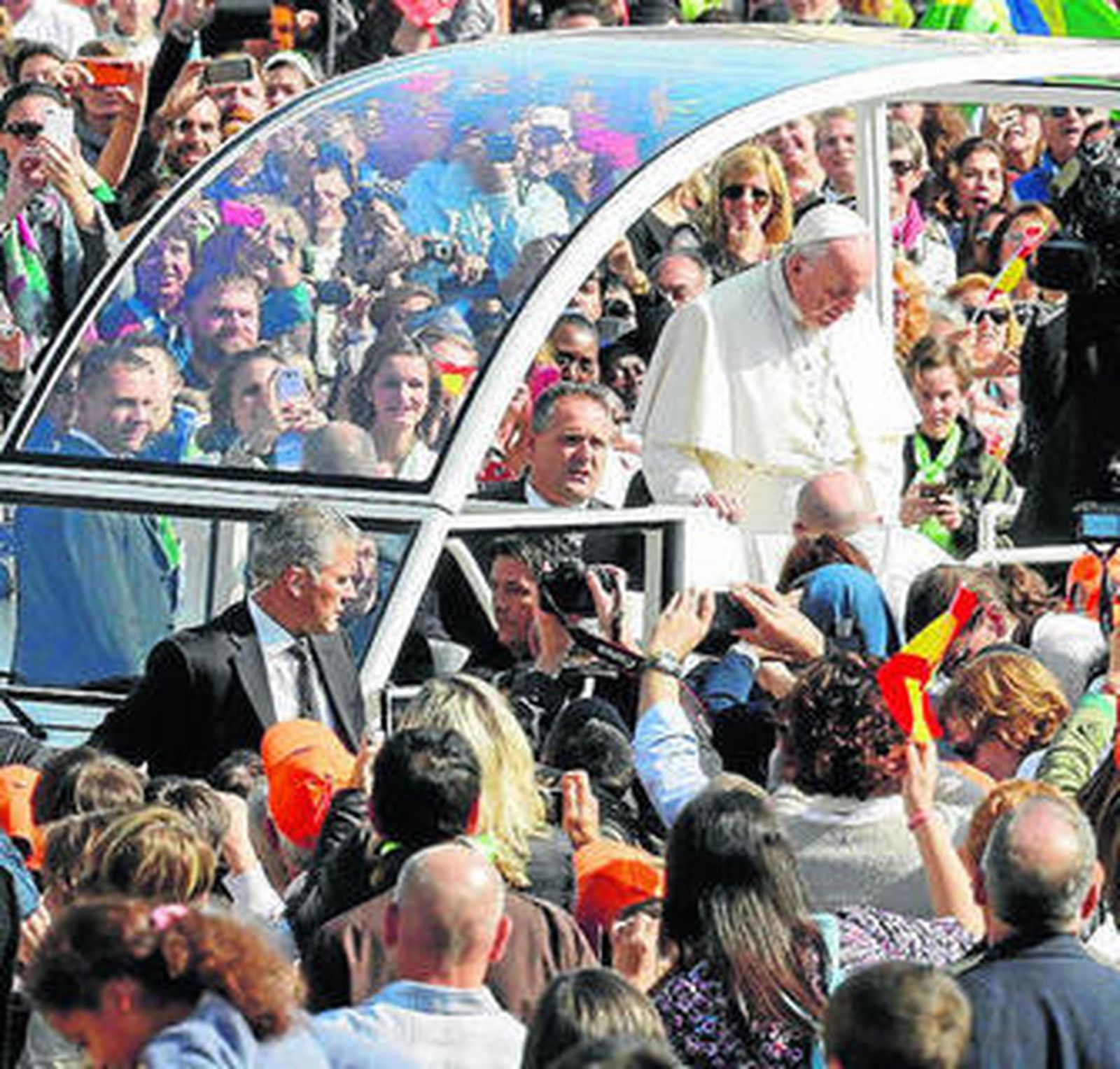 El papa Francisco declaró su santidad a las 10:32 De Huelva acudió una peregrinación de más de 350 personas encabezadas por el obispo, José Vilaplana
