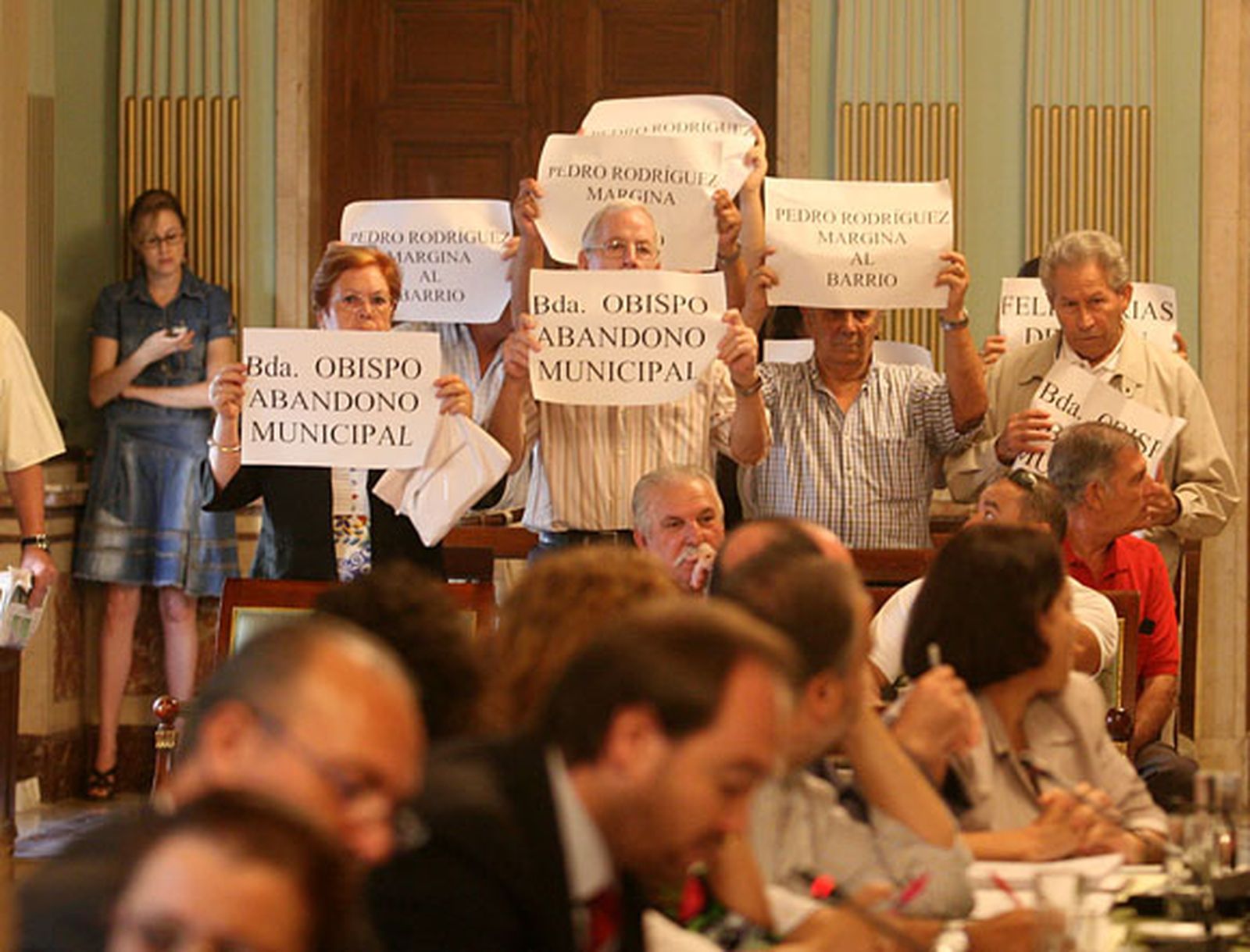 Vecinos de la barriada del Obispo se manifiestan en el pleno para pedir obras en el barrio