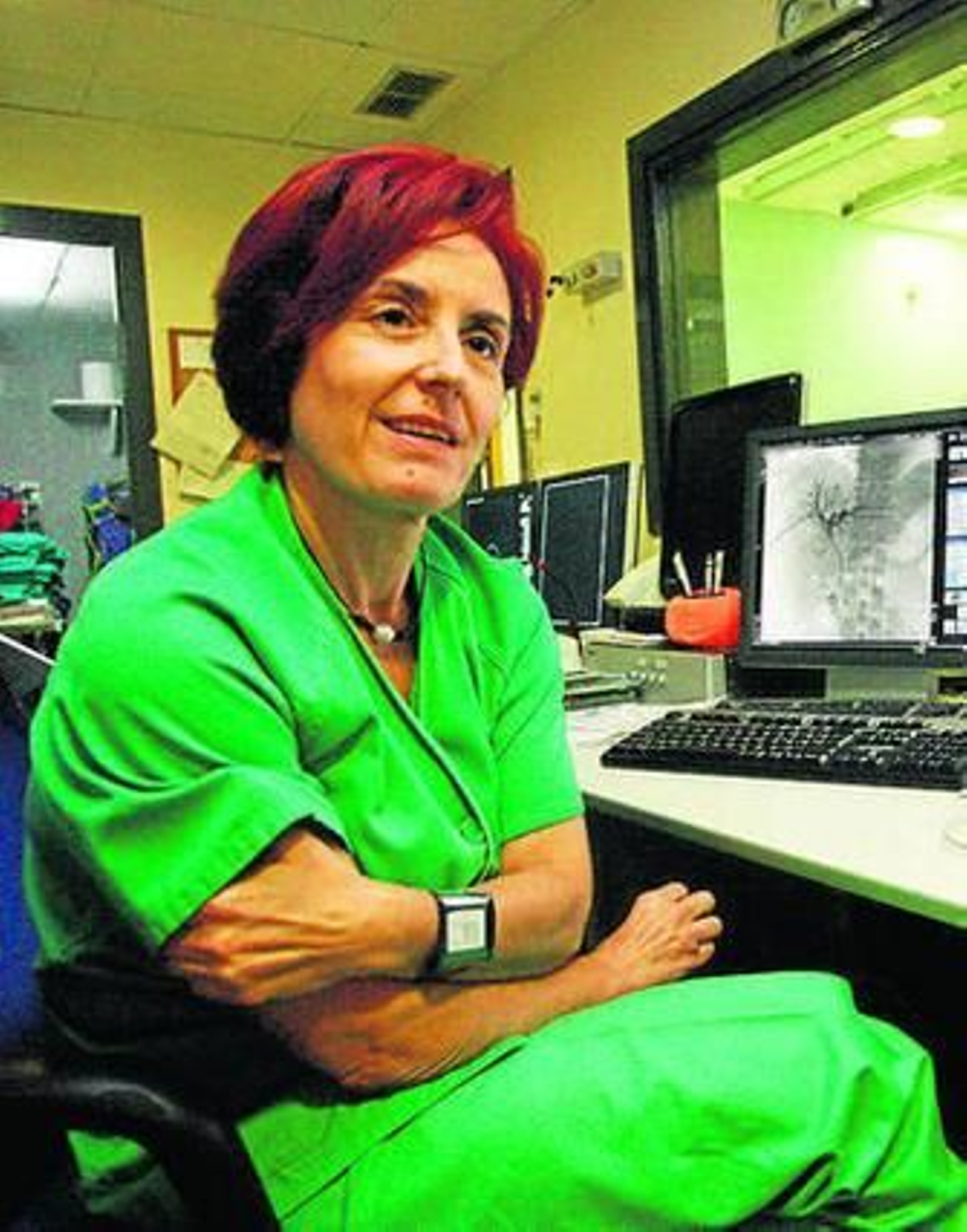 Una de los médicos de la Unidad de Radiología Vascular e Intervencionista del Juan Ramón Jiménez es Teresa Moreno, actualmente presidenta de la Sociedad Española de Radiología vascular Intervencionista (Servei). La facultativa subraya la importancia de esta rama de la asistencia sanitaria pues "es de las nueve especialidades presenciales con más trabajo en el Servicio de Urgencias".